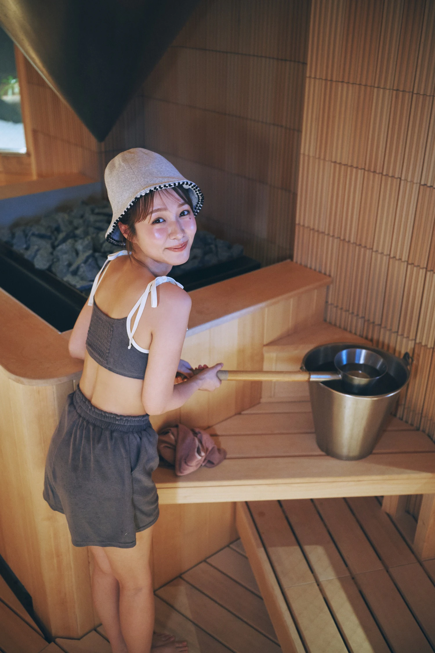 今回登場する、前田希美さん、小栗有以さんのやわらかな雰囲気の中に、サウナの心地よさがにじむカットも印象的です。