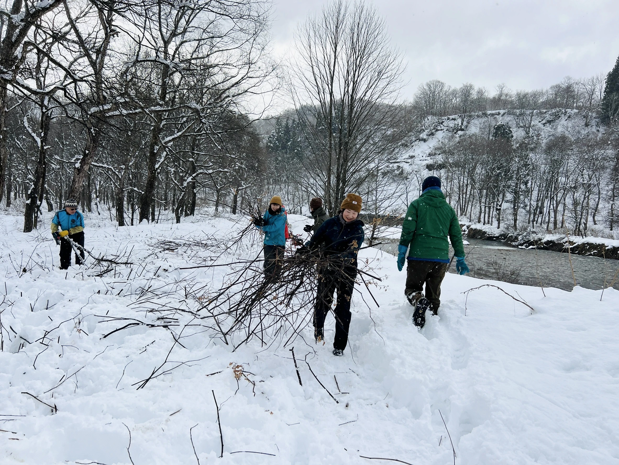使われる薪は、水没林の景観を守るために伐採されたシロヤナギの間伐材や折れ枝。