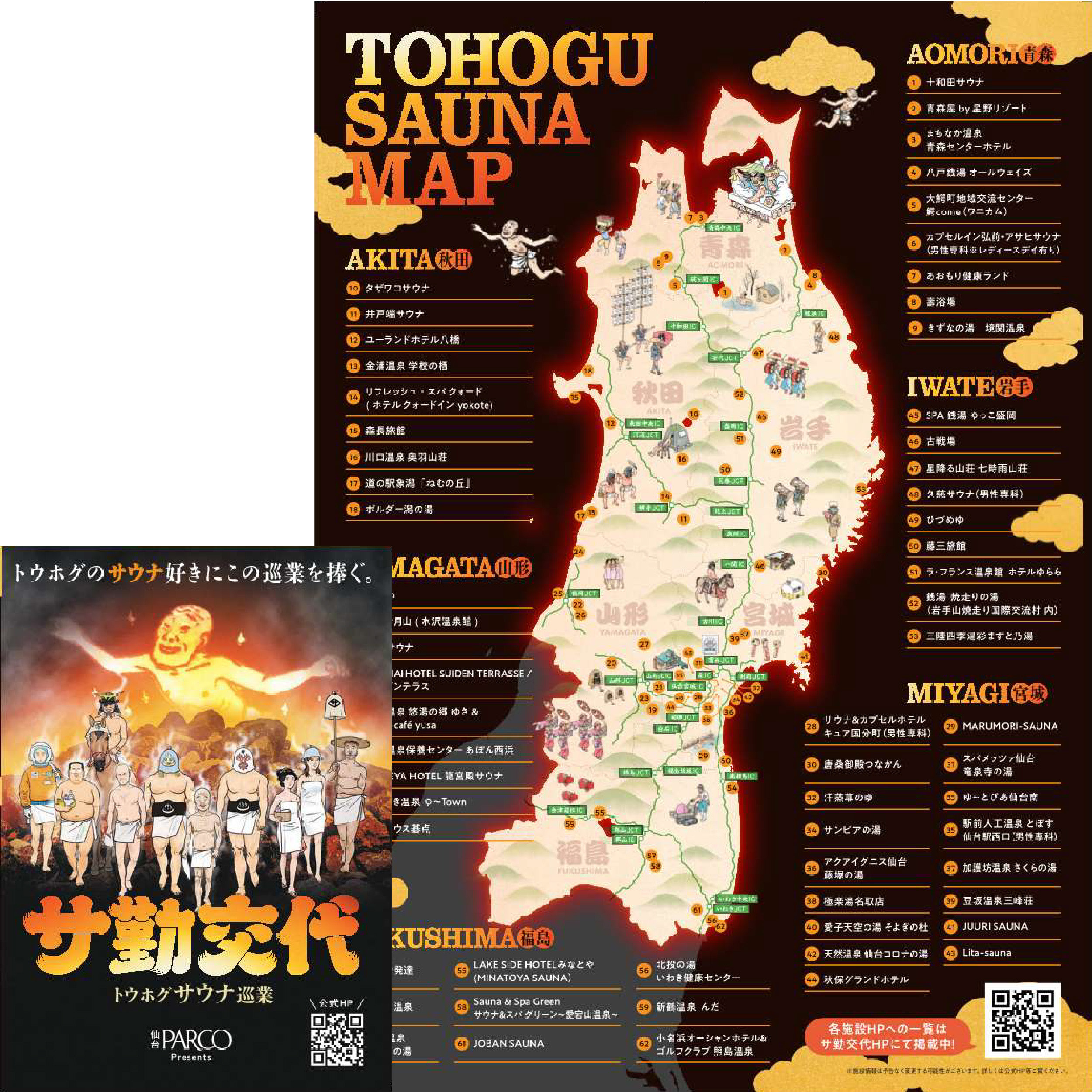 パンフレットには、東北のサウナ62施設を紹介する「TOHOGU SAUNA MAP」が収録されています。