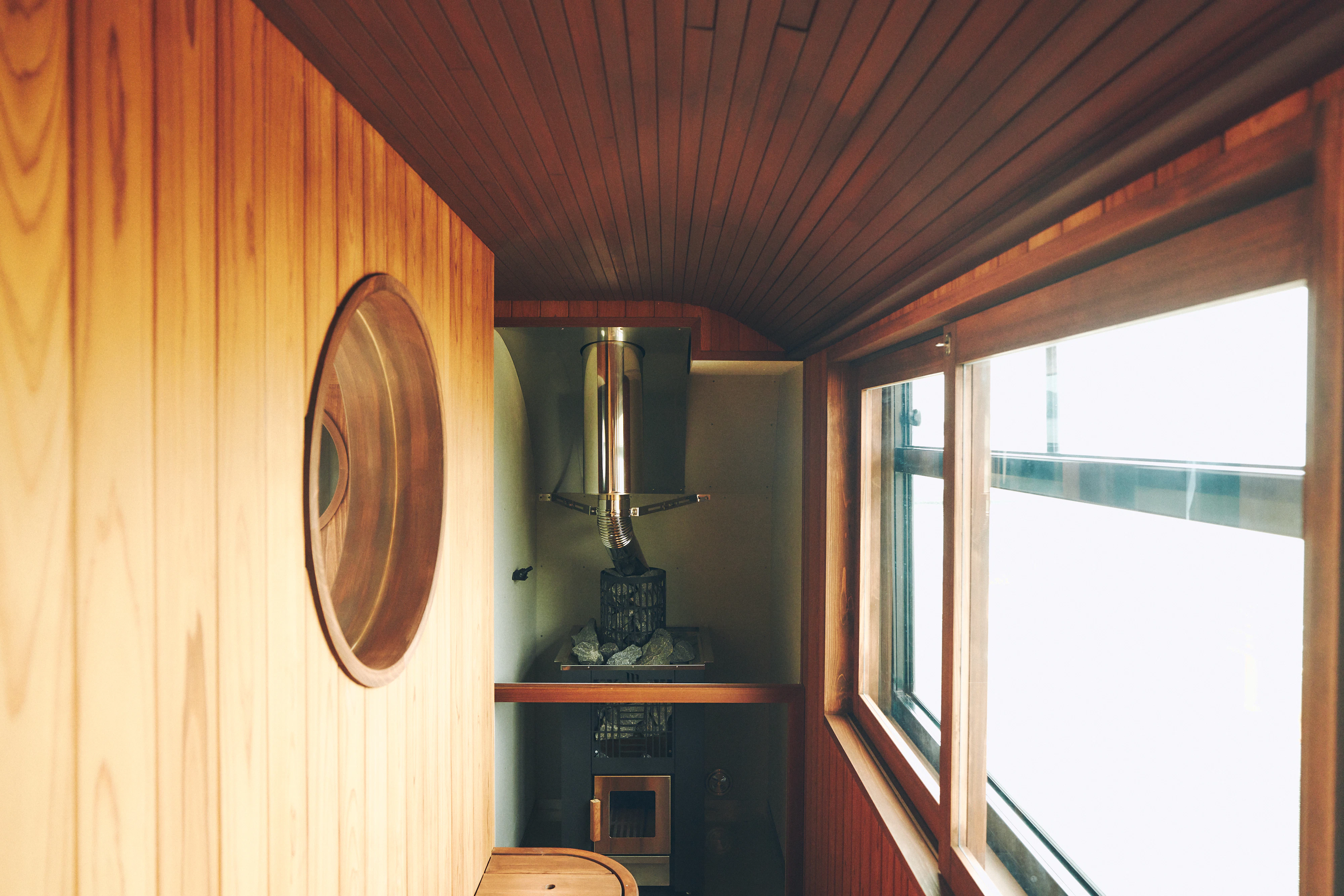 サウナ室には、静岡県産の天竜材を使用。