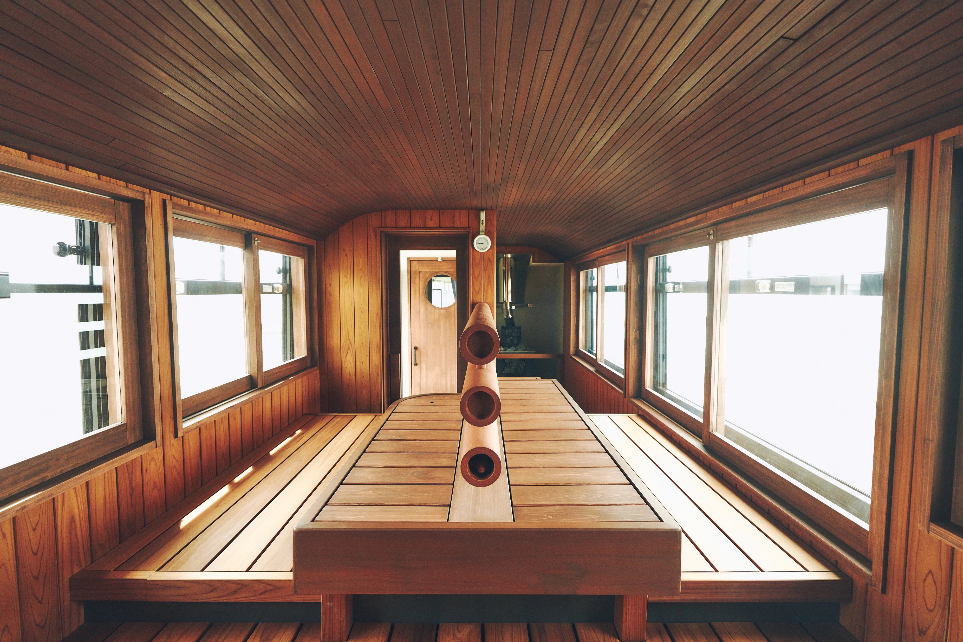 サウナ室のモチーフは、町家の構造「うなぎの寝床」。