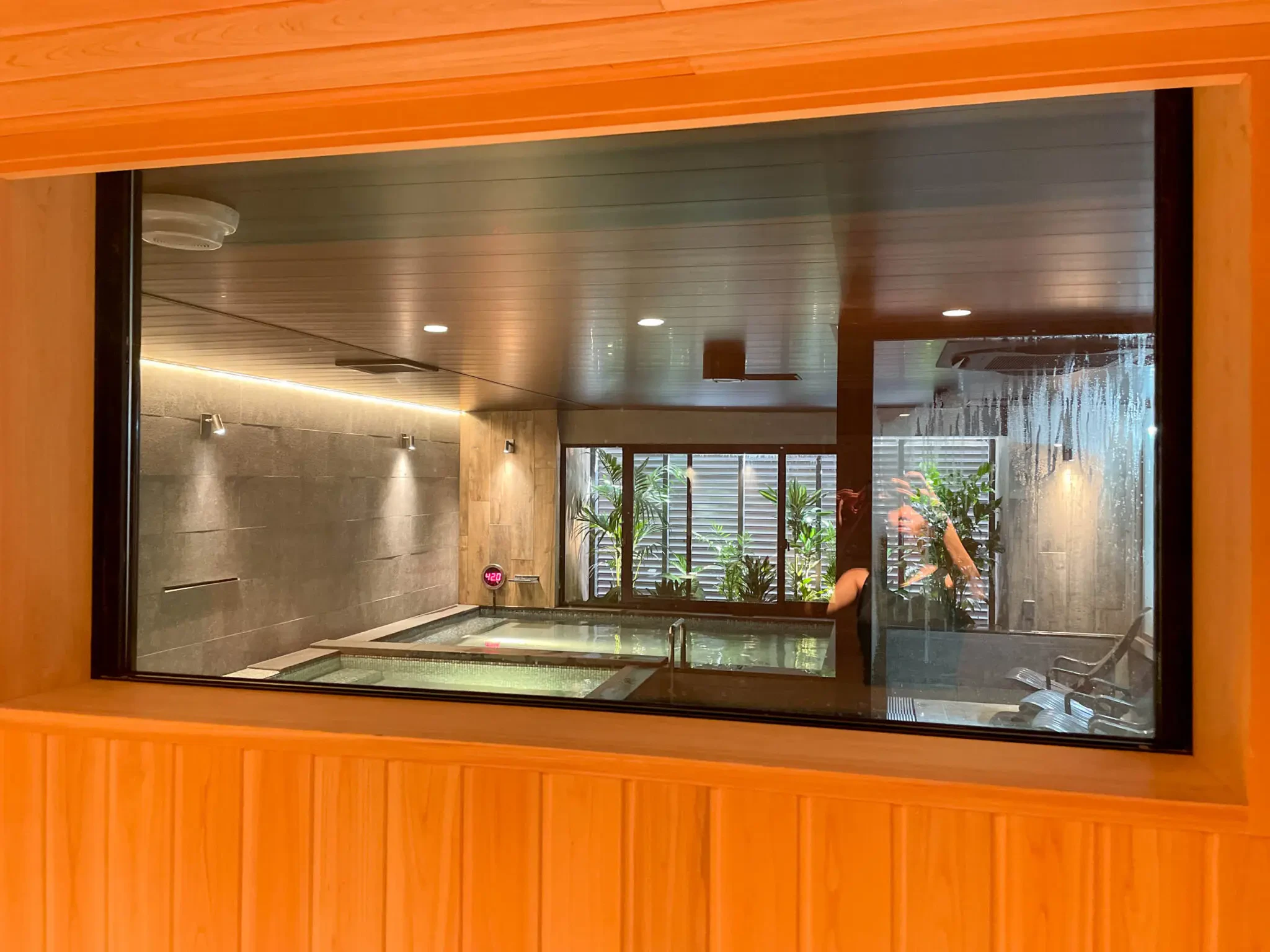 こだわりのストーブと蒸気、ヒノキ座面のやさしい座り心地、癒しをくれるグリーンと、実に巧みな設計で、身も心もデトックスできるサウナでした。