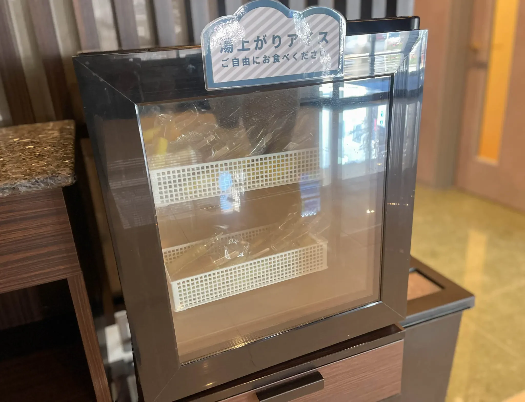 まずは、サウナでほてった身体をひんやり締められる「湯上がりアイス」。