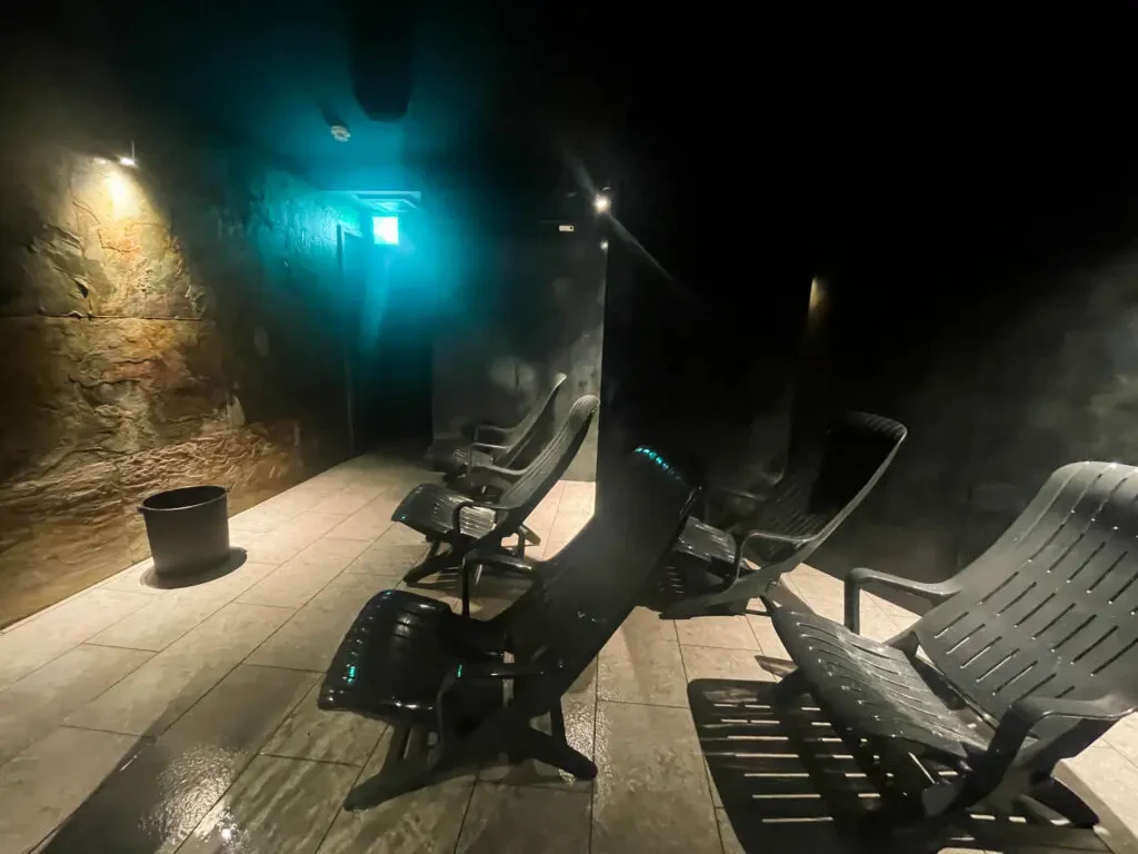 奥のスペースは、「洞窟」をイメージした内気浴スポットになっていました。