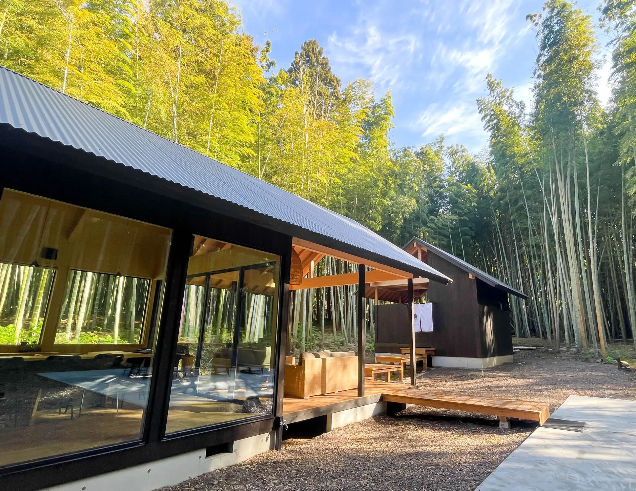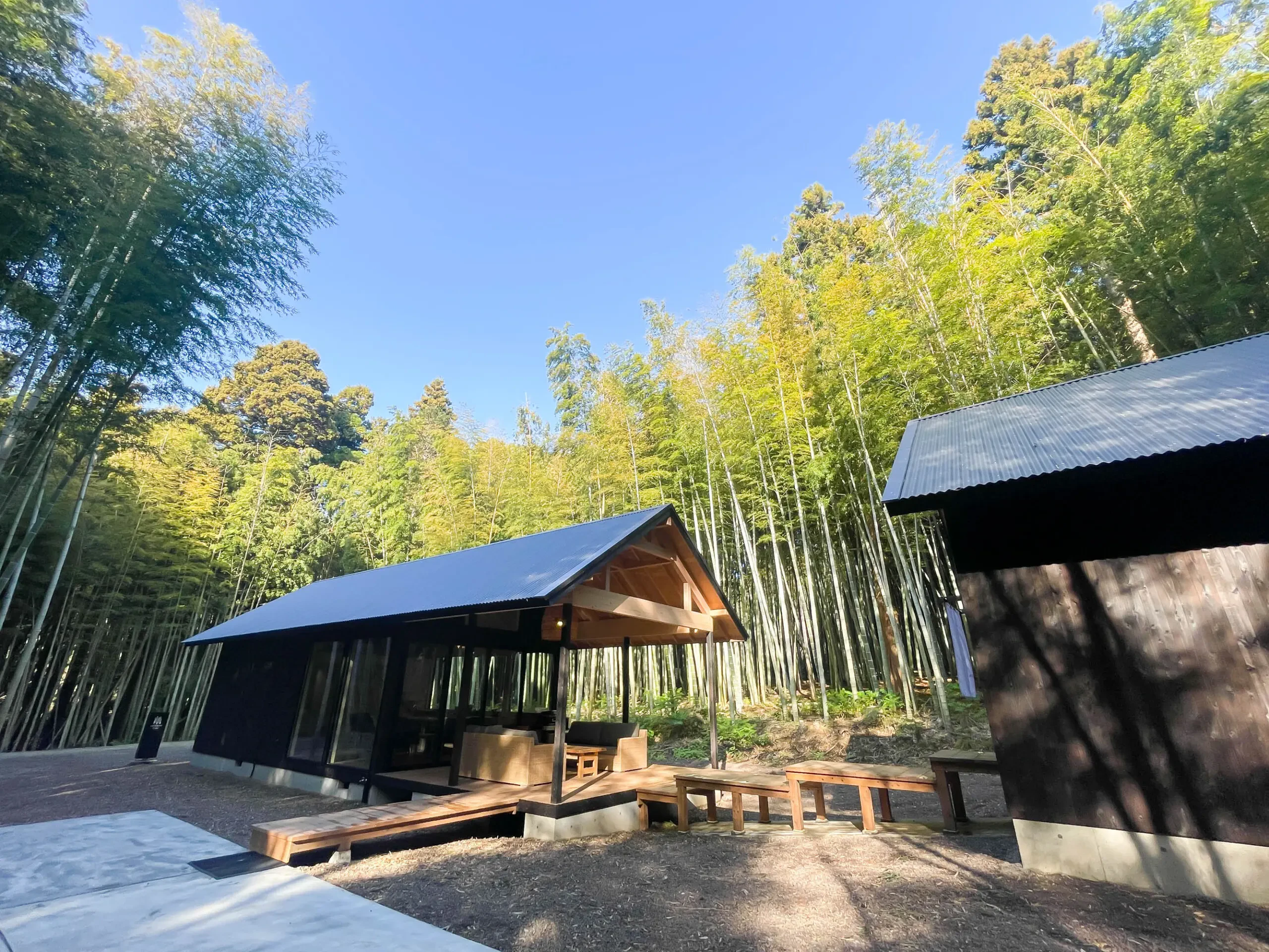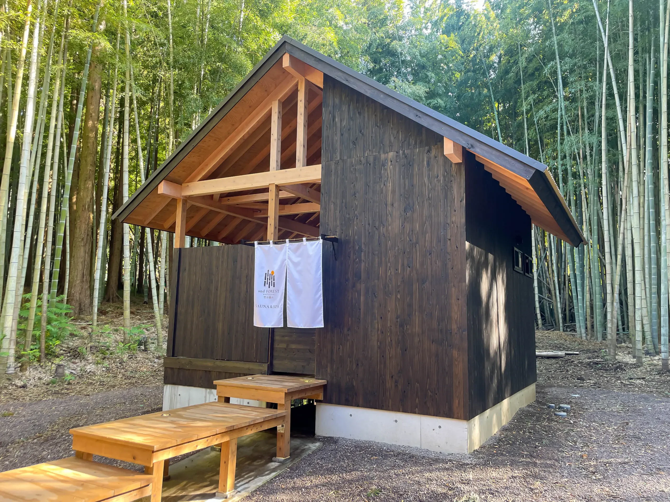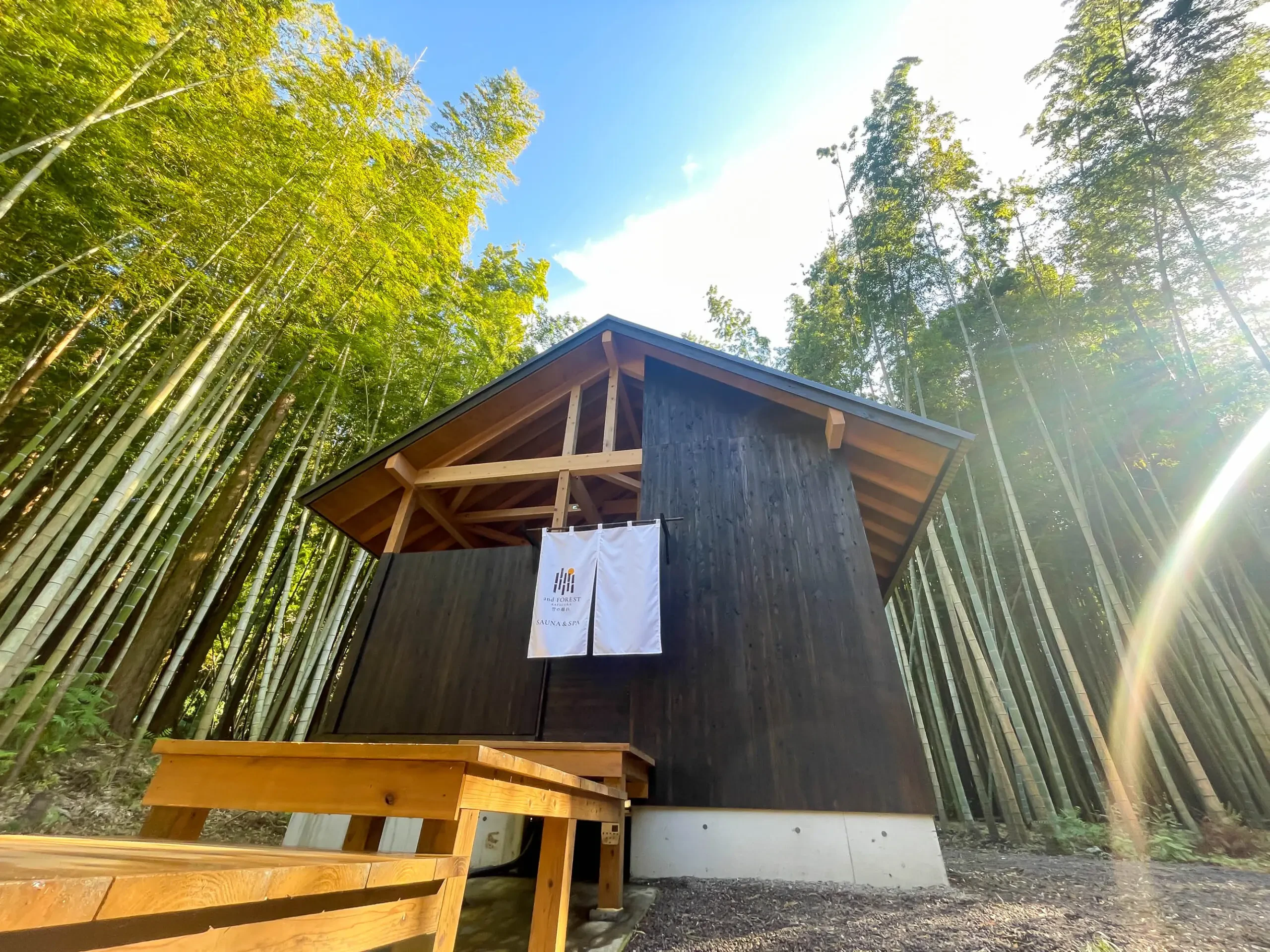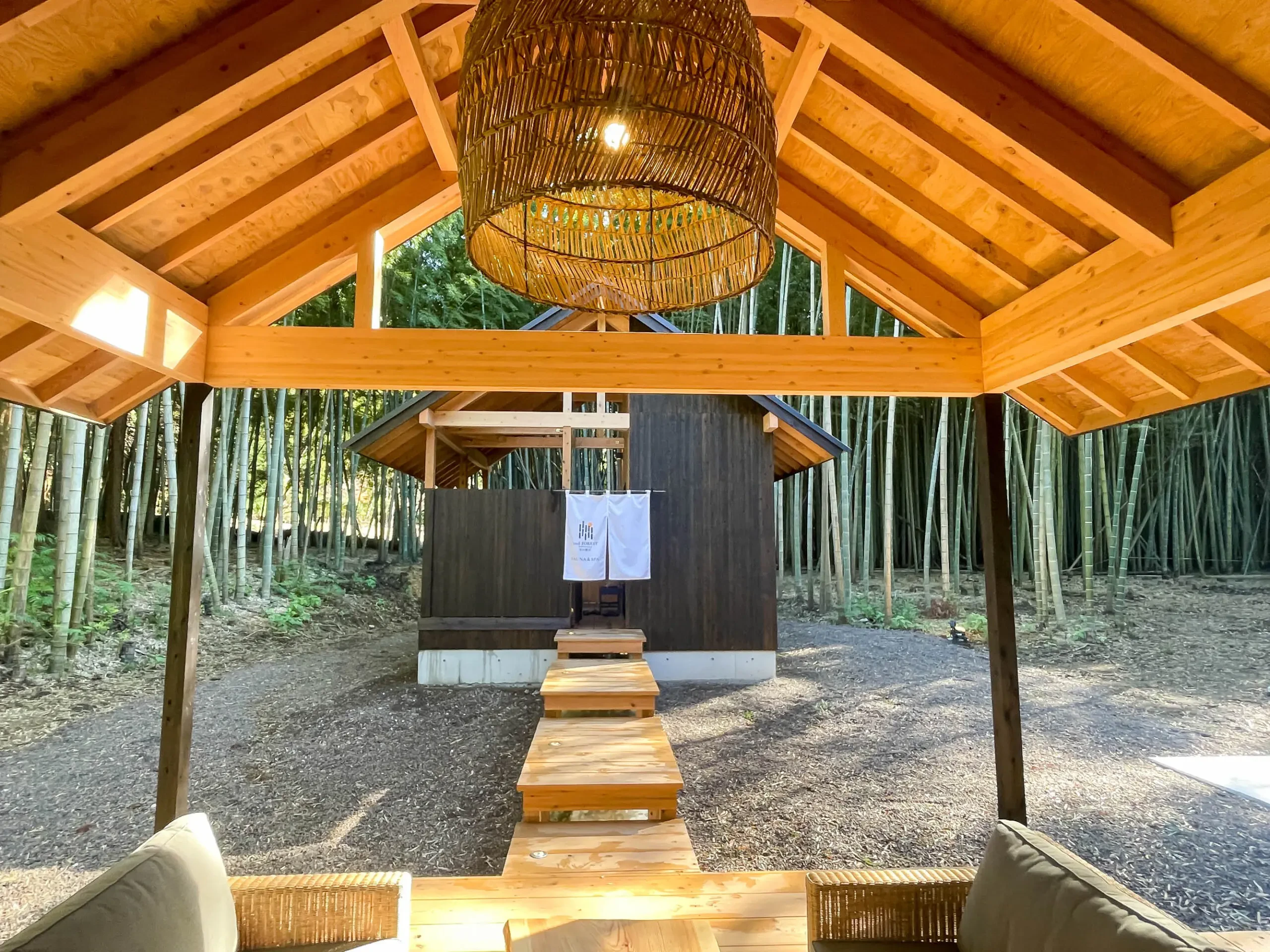 タオルや自前のポンチョを羽織って、ここならではの「竹林浴」もおすすめです。思わず深呼吸したくなるand FORESTならではのスポット、ぜひ満喫してみてください。
