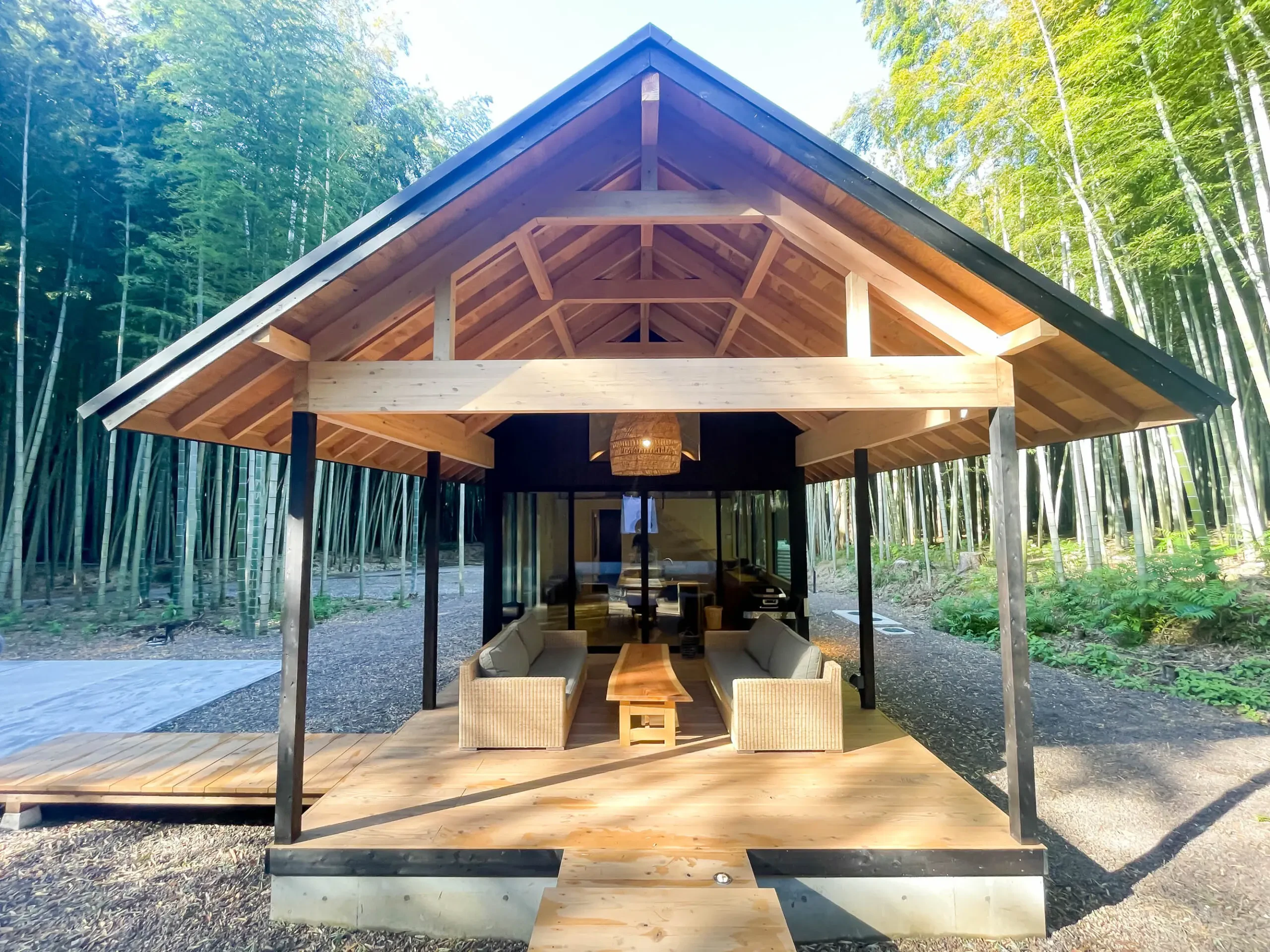 竹林を抜けると、ぽつんと佇むヴィラが登場!「竹の離れ」の名の通り、見渡す限り竹林に囲まれています。しーんと静まったこの空間が全部貸切なんて、なんとも贅沢……!