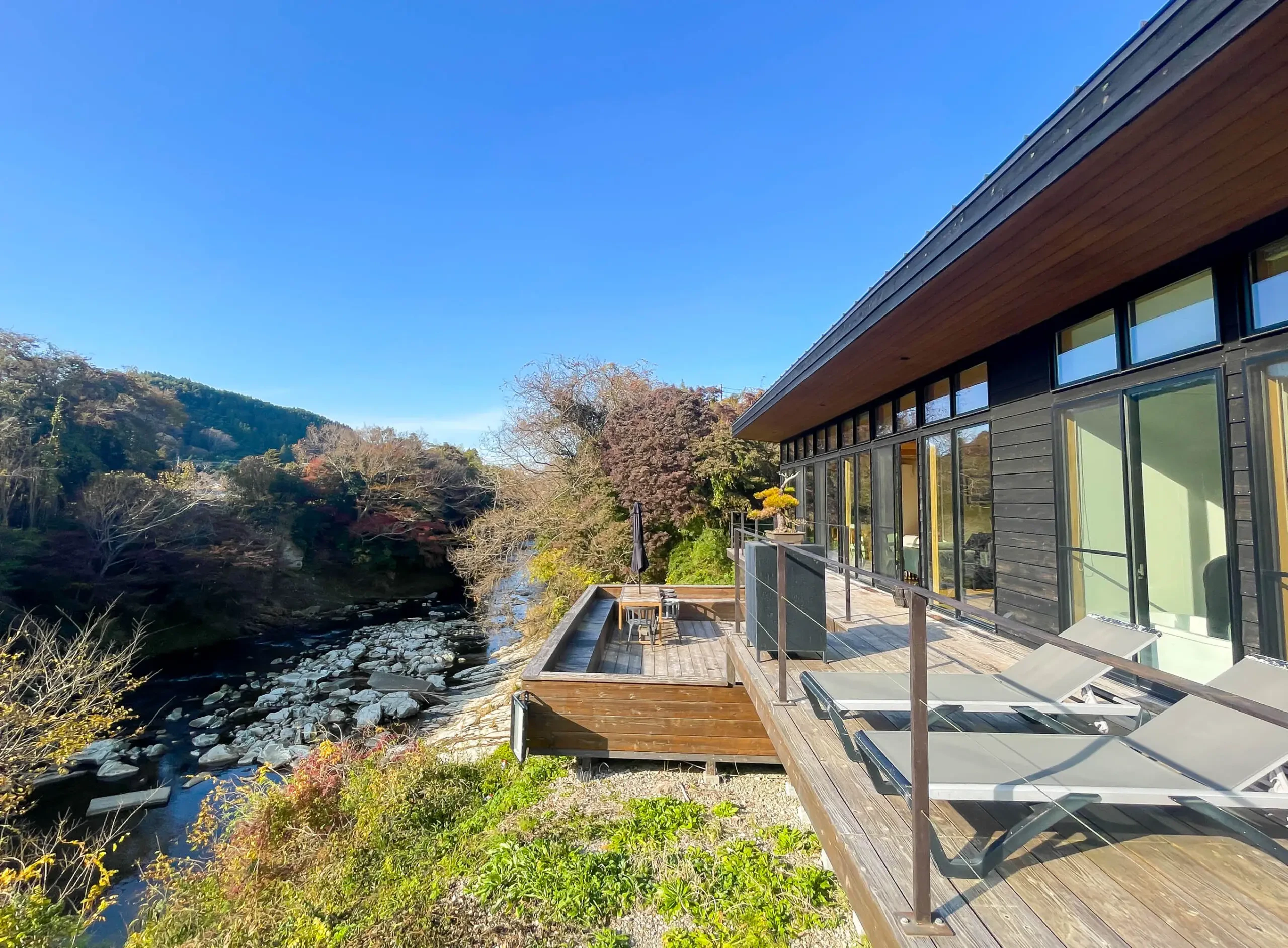 目の前には広がるのは夷隅川の源流。!マイナスイオン漂う空気感を思いっきり味わえる絶景宿です。
