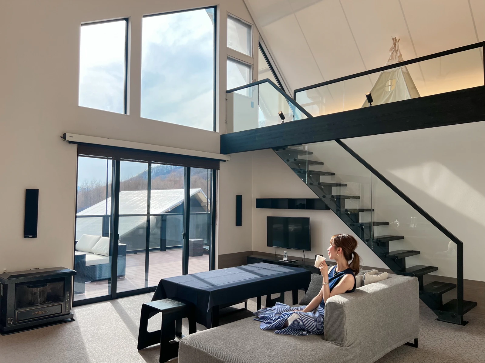「あさま空山望」の推しポイントはなんと言っても丸っと自分の空間になる全棟プライベートヴィラ。浅間山が目の前に見える広々としたウッドデッキ、開放感のあるメインルーム、人目を気にせずくつろげるサウナエリアは、まさに“究極のととのい”を叶えるために設計されたこだわりの空間なんです。
