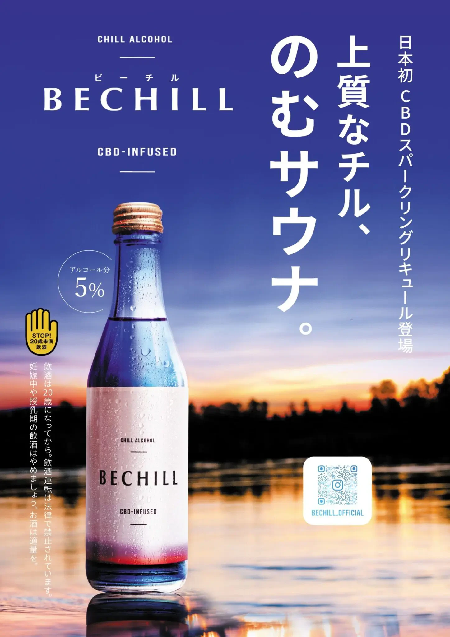 サウナあがりの”ととのい”の感覚、経験されたことはありますか?BECHILL(ビーチル)は、心地よくフワッとした”ととのい”のように、チルな空間を演出するアルコール飲料です!