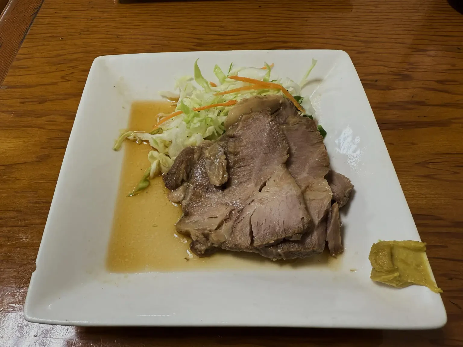 お通し・チャーシュー・刺身・焼き魚、ビール1本付のコースをオーダーしました。値段はなんと1,500円! めっちゃ安い…。このクオリティでこの価格! 他ではなかなかないんじゃないでしょうか。