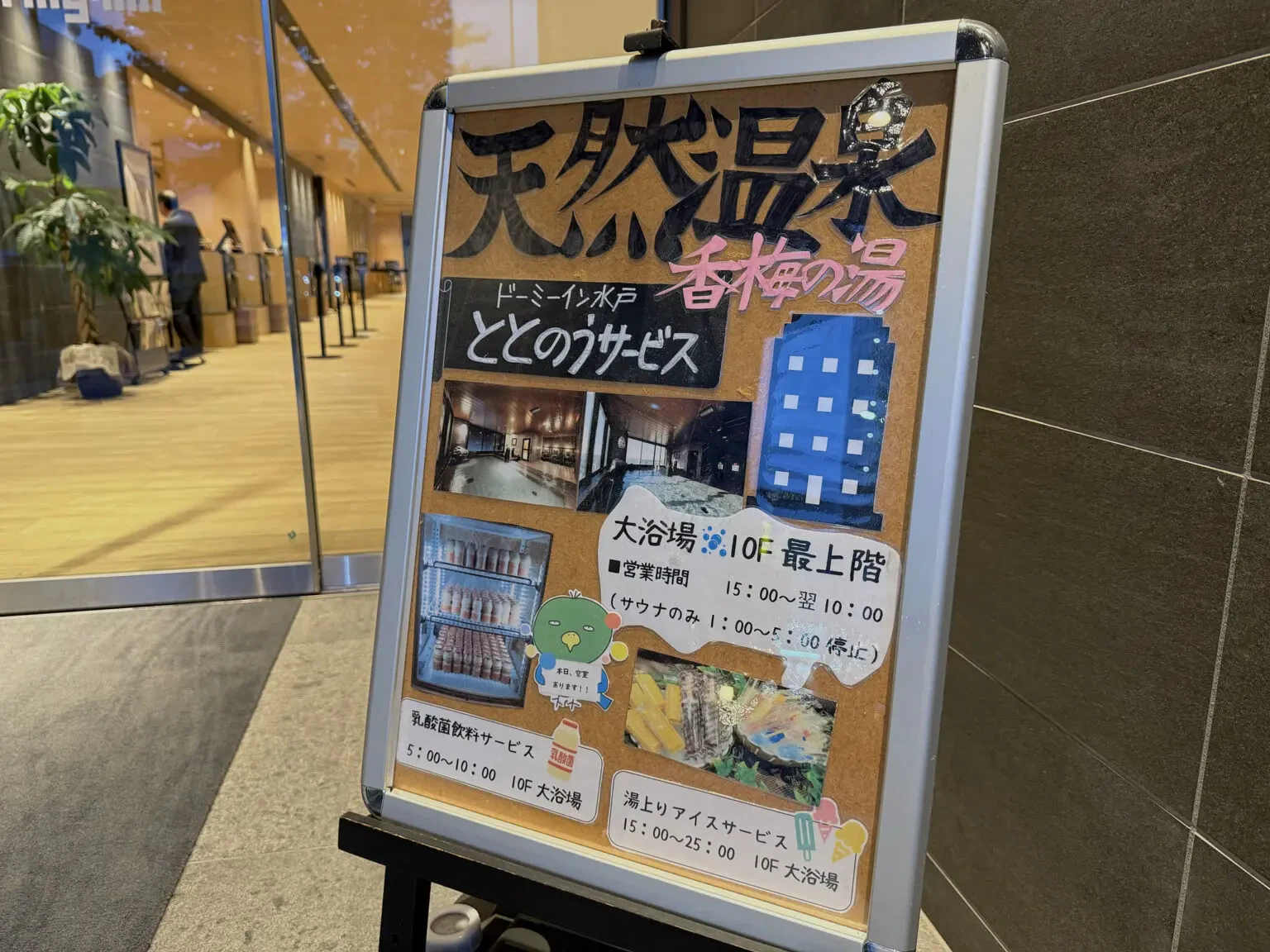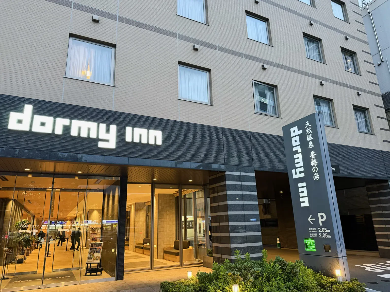 お腹がいっぱいになったところで、水戸駅周辺を軽く街ぶらしてからホテルにチェックイン。ホテルはもちろんドーミーインです。「天然温泉 香梅の湯 ドーミーイン水戸」は水戸駅から徒歩約12分で、周囲には飲食店もたくさんあり便利。