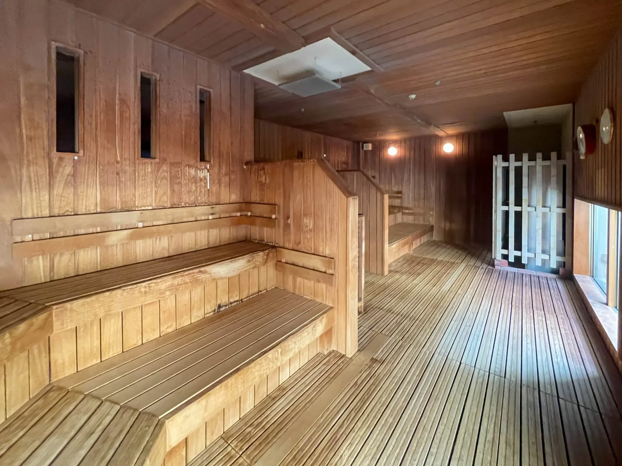 男湯「グランドサウナ」は、座る場所でちがった温度感が楽しめるなんともユニークな空間!