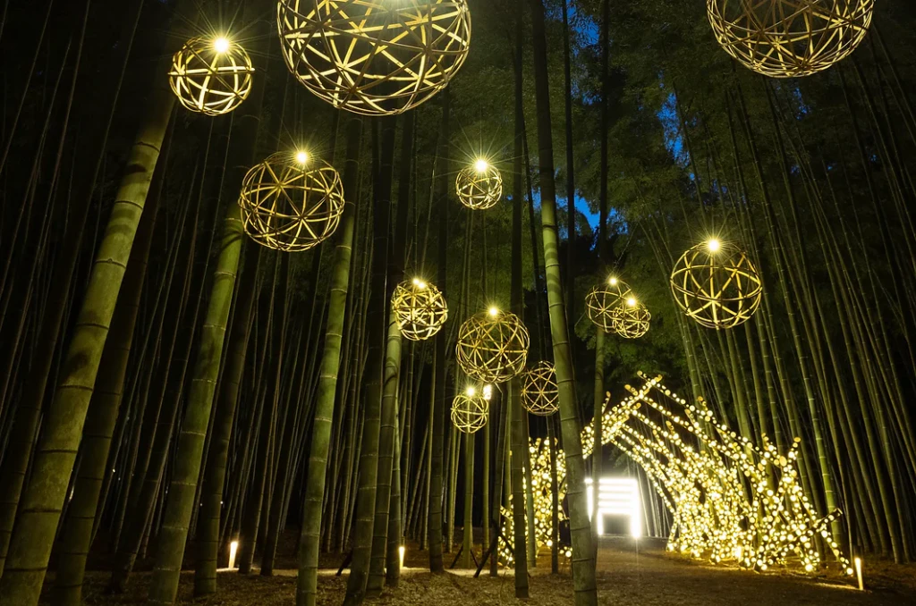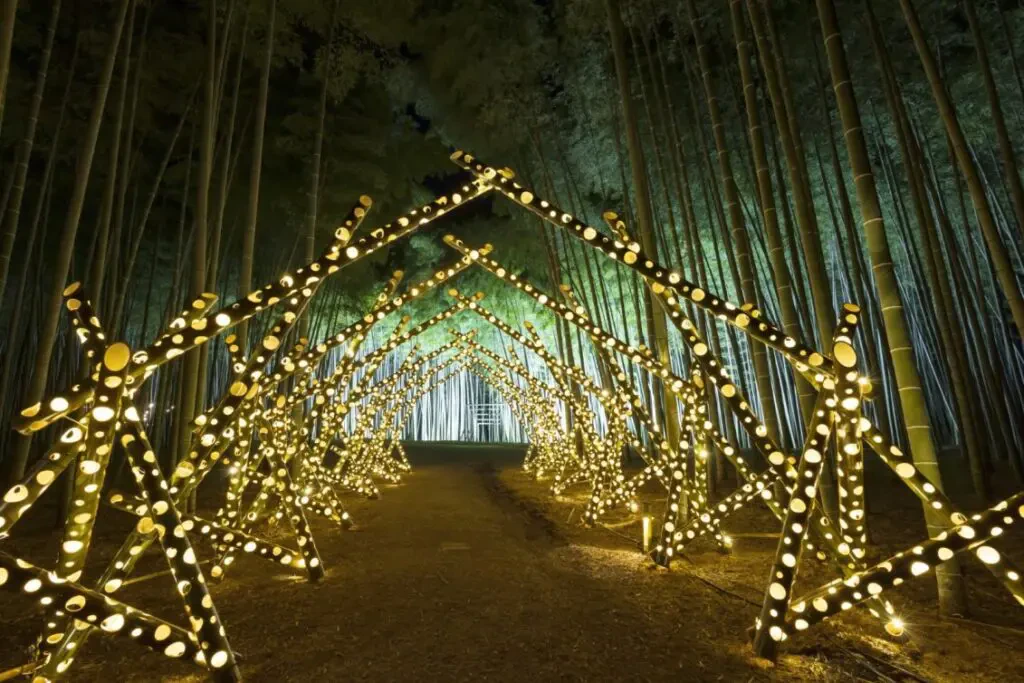 土日祝日の夜間には、ライトアップされた幻想的な竹林風景を楽しめます。ぜひ癒しを求めて訪れてください!
