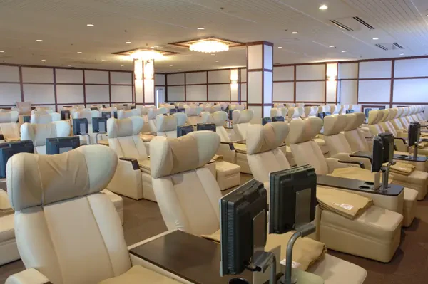 充実のお風呂、サウナを満喫したあとは、さらなるチルを求めてリラクゼーションスペースへ。約100台のリクライニングチェアが並ぶレストルームは、飲食もOK。テレビをみたり、お昼寝したり、自分だけのチルタイムが満喫できます!