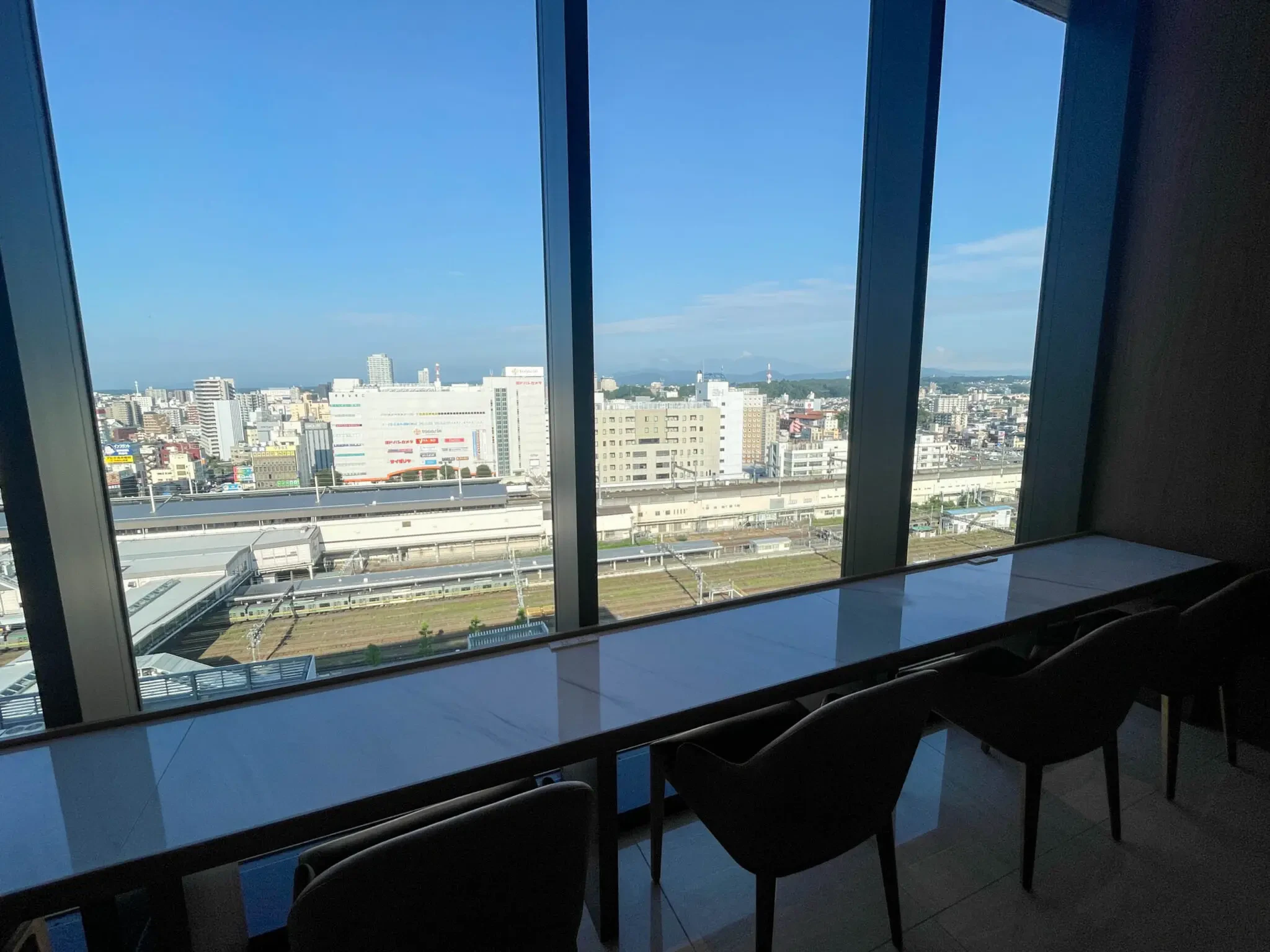 開放感あふれるレストランの窓からは、宇都宮の町並みも一望できます。朝からおいしい朝食とさわやかな景観を楽しんだら、エネルギーチャージ完了。大満足のカンデオホテルズ宇都宮ステイでした。