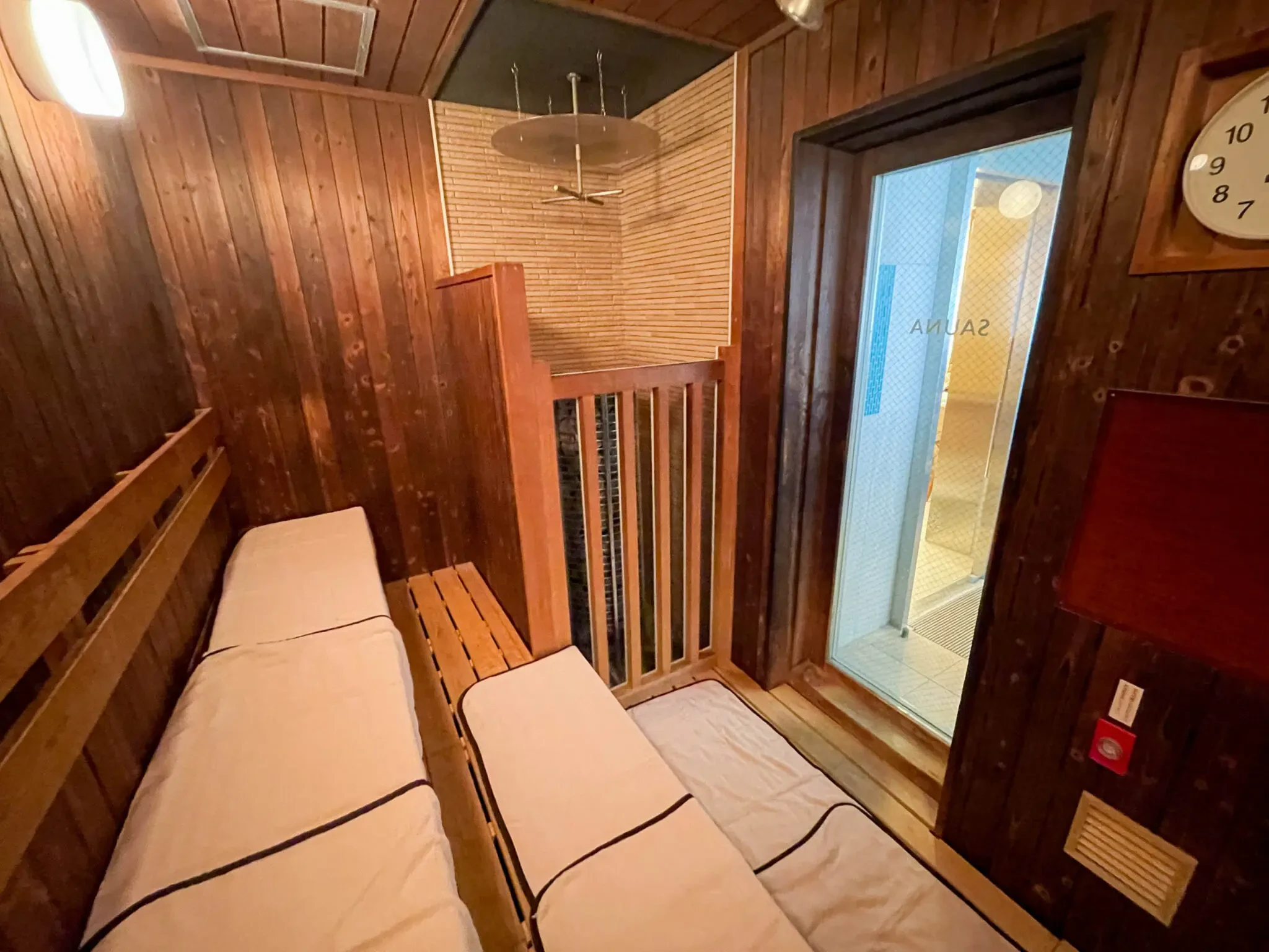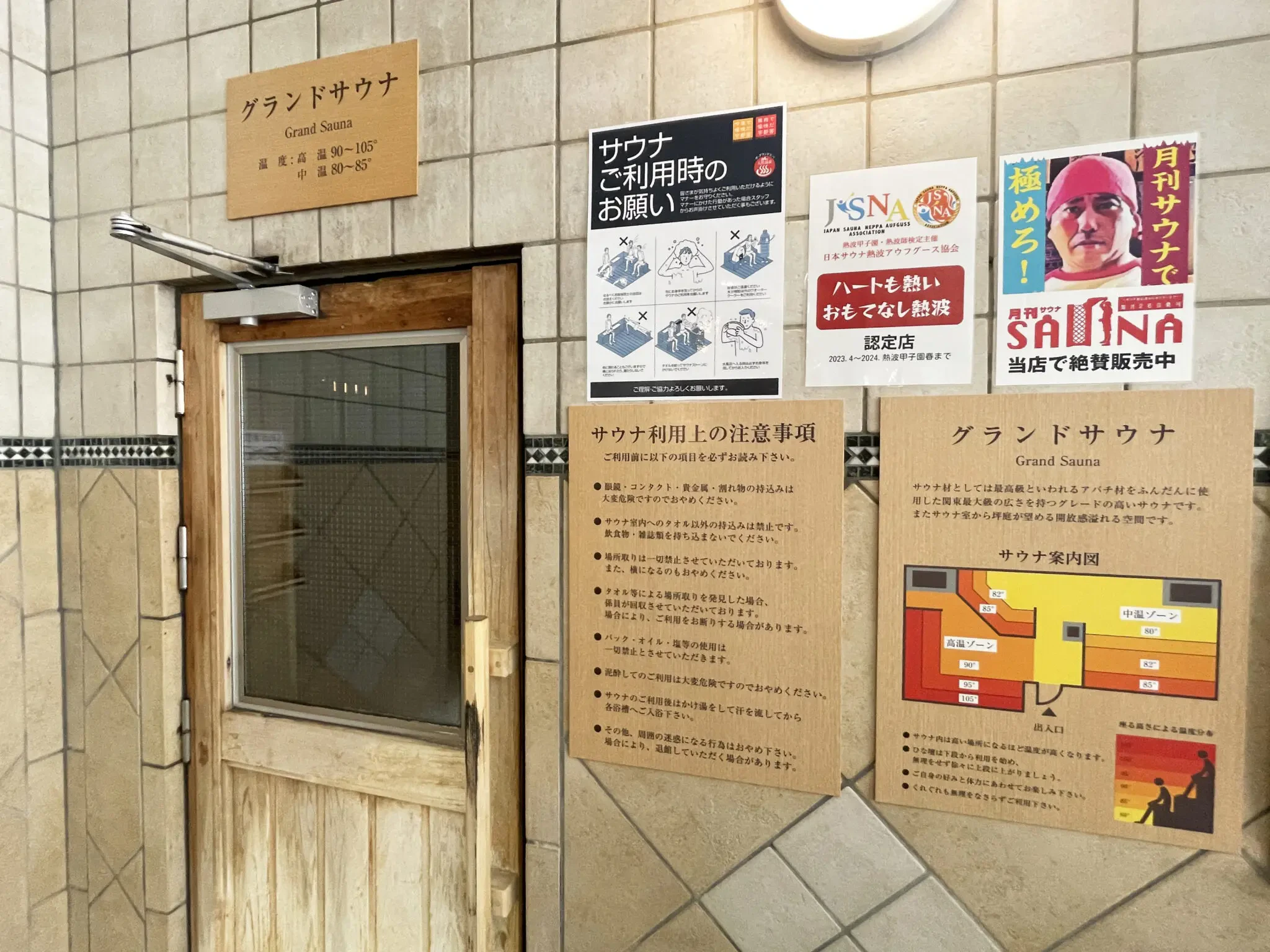 女湯サウナは、90〜100度設定の高温「ドライサウナ」と、60〜70度で中温の「グランドサウナ」の2種類。個人的には中温のグランドサウナでじっくり温まるのが好みでした!高温サウナでは、1日3回アロマサービスの実施もあるので要チェックです。