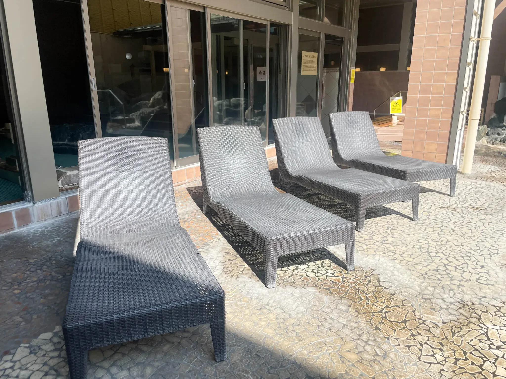 休憩はぜひとも露天に出て外気浴を。サマーベットに寝転べば、空も望める最高のロケーションを満喫できます。