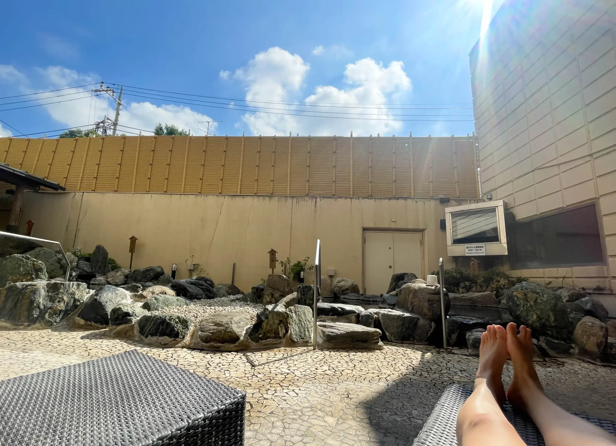 仕上げは、スカイスパの醍醐味地上56mの外気浴スペースで、のんびりと休憩。見上げれば空が望める抜群のロケーションに、心地いい風が運ばれてきます。宿泊先のホテルで、ここまでの外気浴を味わえるとは……!恐るべしカンデオホテルズ。