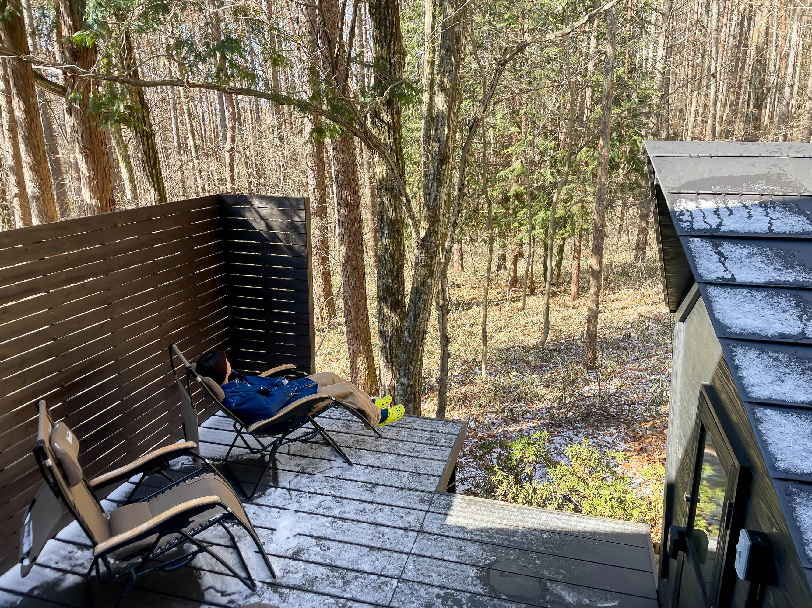 薪サウナでしっかり温まったおかげで、外気浴も思いの外気持ちよく過ごせました!