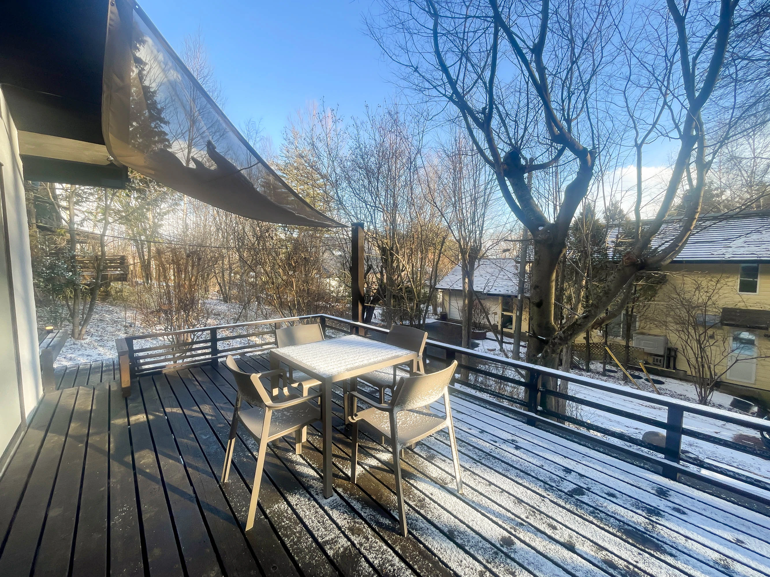 ちなみにバーベキューグリルの用意もあるので、テラスでBBQも可能です。ただこの日の気温が氷点下だったのでさすがに断念……。
