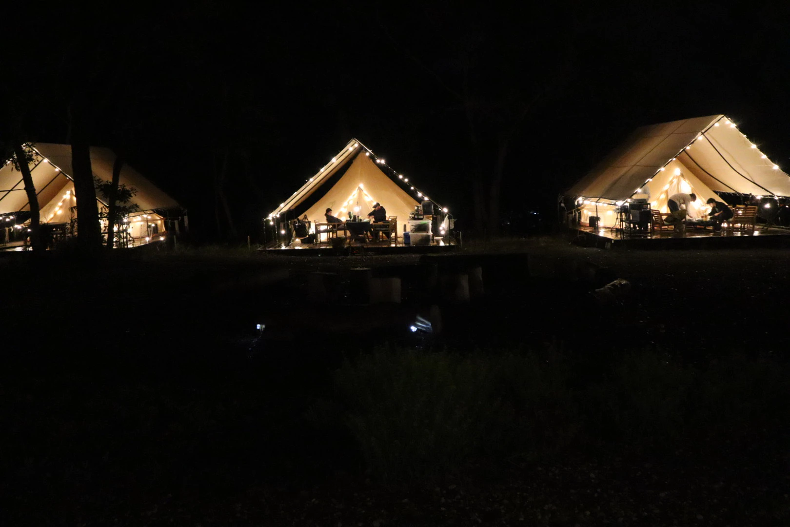 今回は、天候の影響で残念ながら数十分でイベントは終了してしまいましたが、周囲のテントの輝きを眺めながら、大人だけのチルタイムを満喫しました。