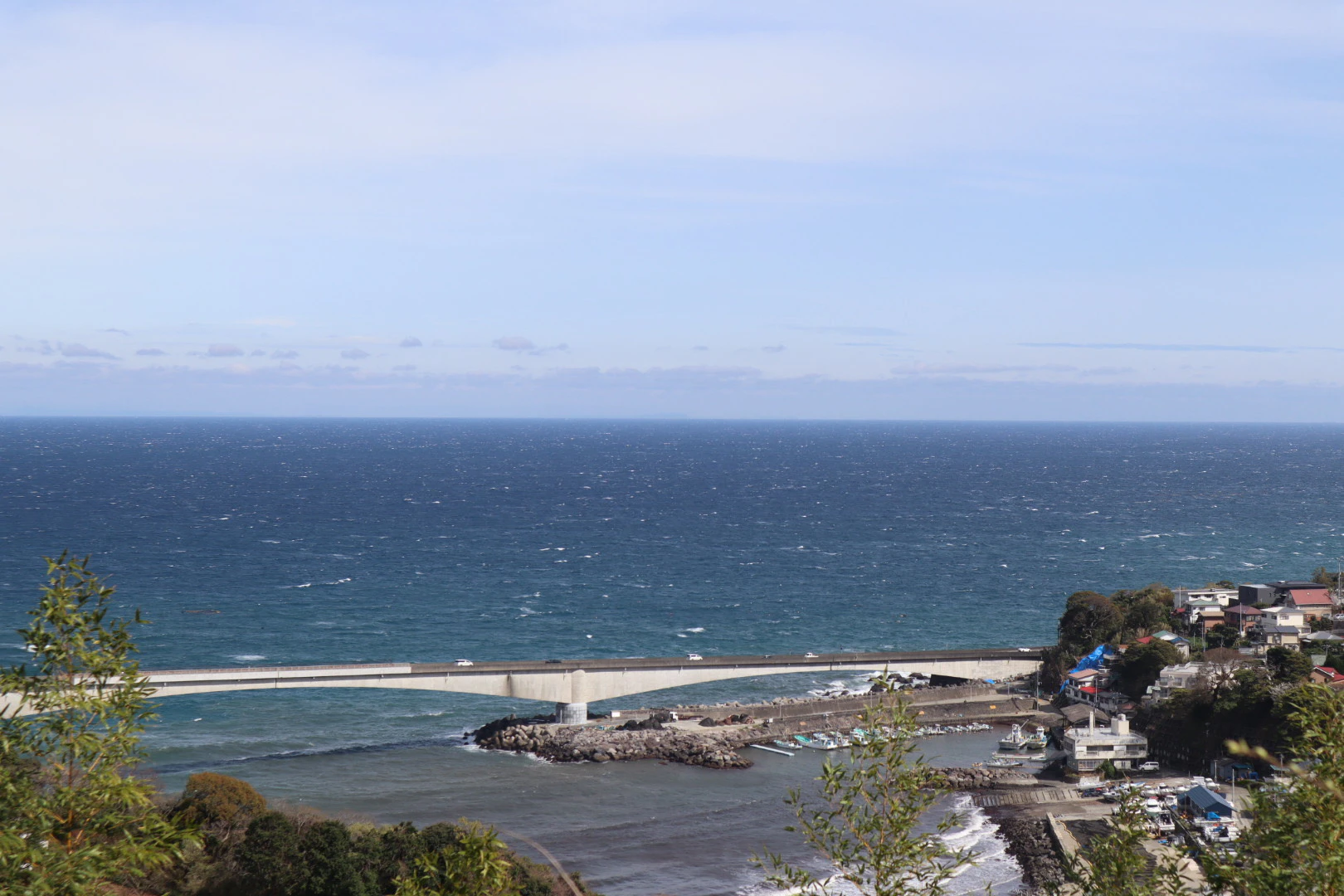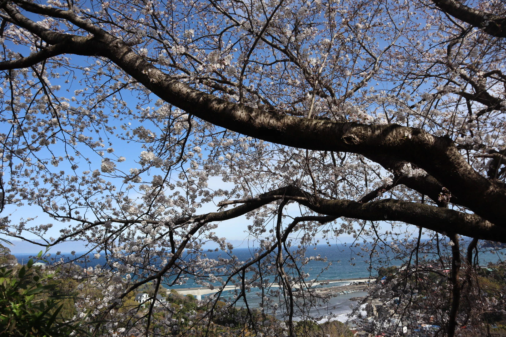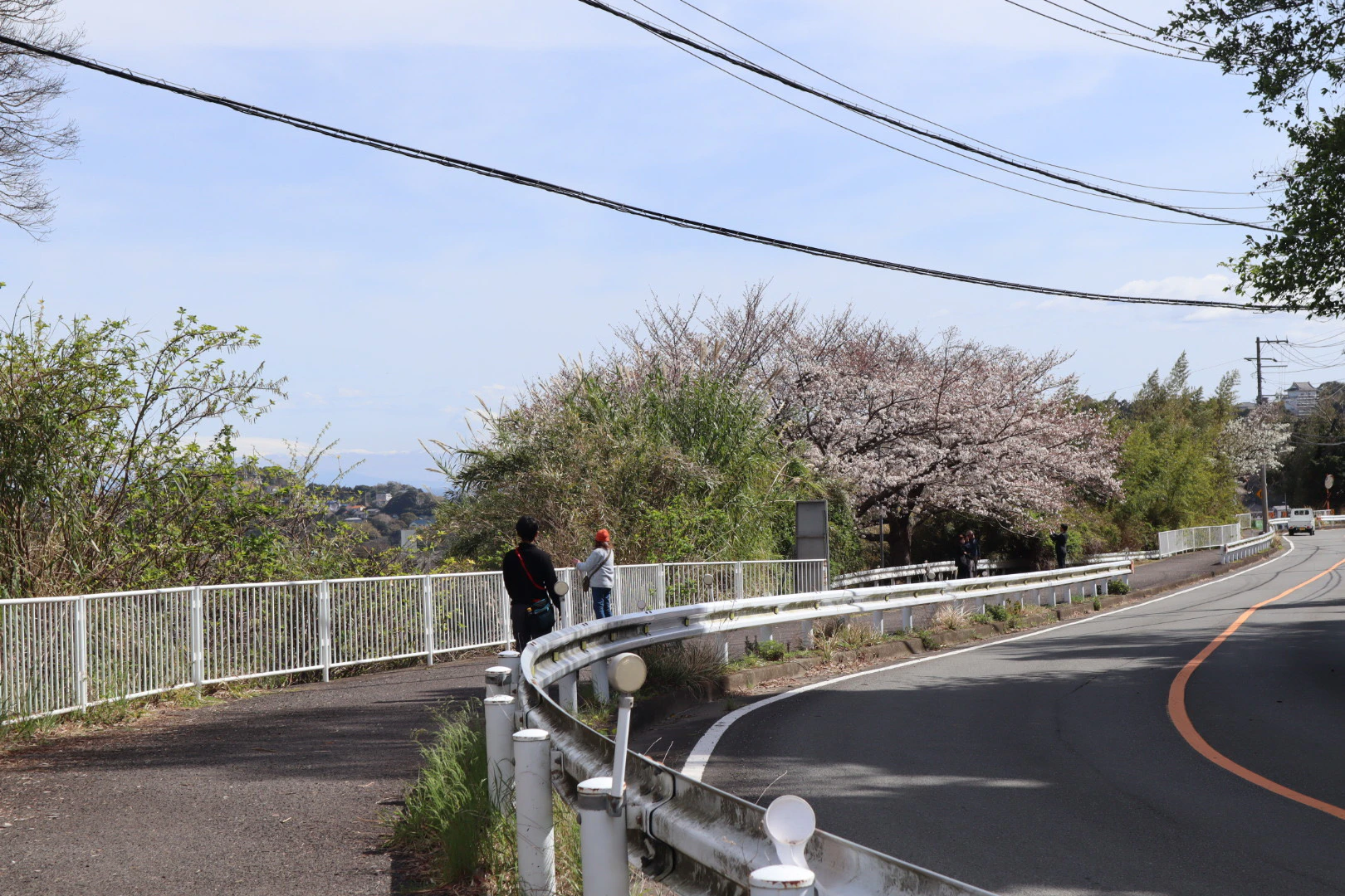 宿から下った先の道沿いに、相模湾を一望できる場所を発見!ちょうど桜の季節だったため、華やかでチルい景色を堪能しましたよ。