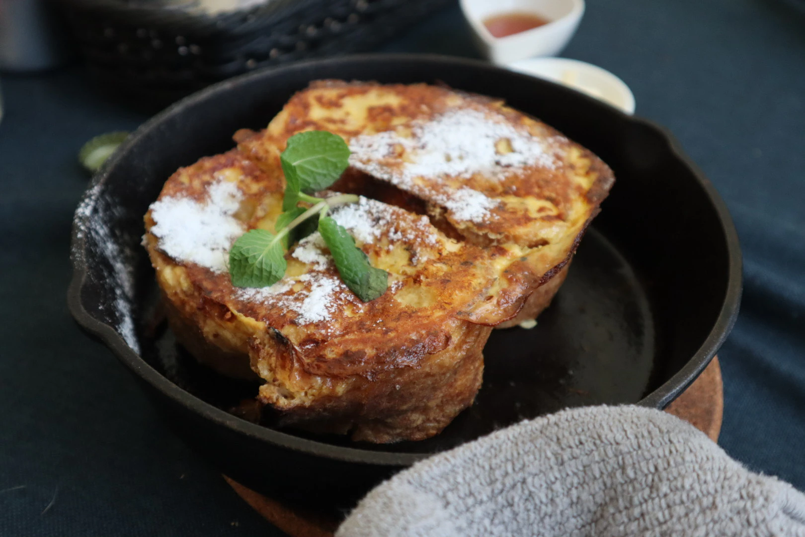 フレンチトーストは、神奈川産小麦を使ったパンが有名な「麦踏」のバケットを使用。かなり厚切りで、見た目のふわふわに反してボリュームがありました。別添えの甘〜いシロップを少しずつかけながら、味わっていきます。