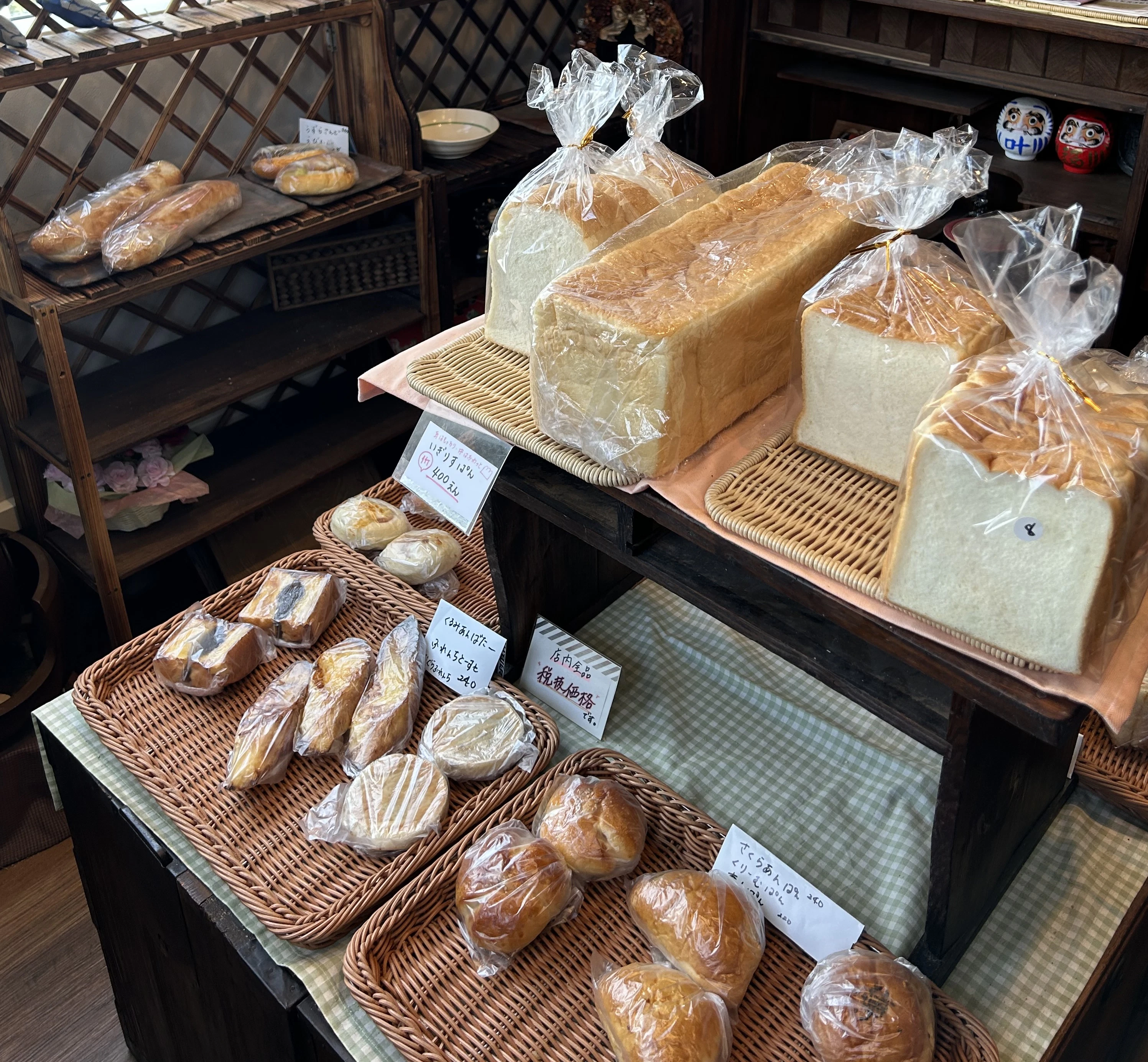 早速なかに入ってみると、こぢんまりとした店内に手作りの惣菜パンや菓子パンが並んでいます。子ども達が食べやすい種類も多く、サンドイッチやあんぱんなどを購入しました。
