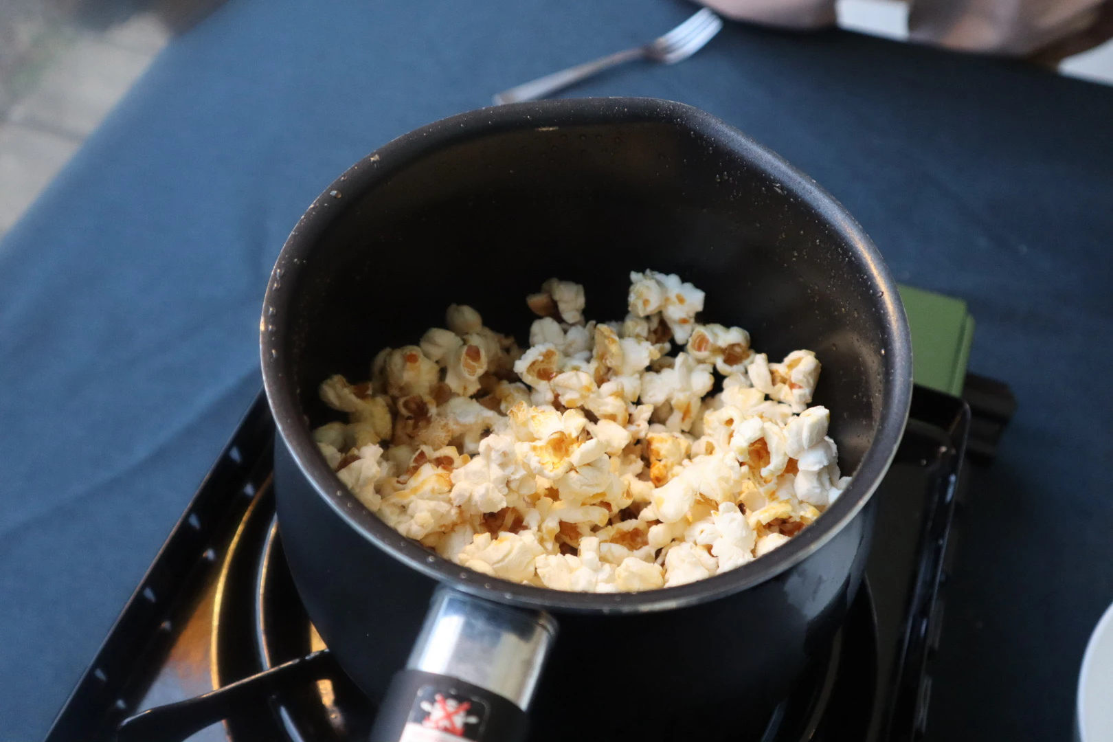 外で作って食べるポップコーンは、非日常感があり、楽しくおいしい体験になりました。
