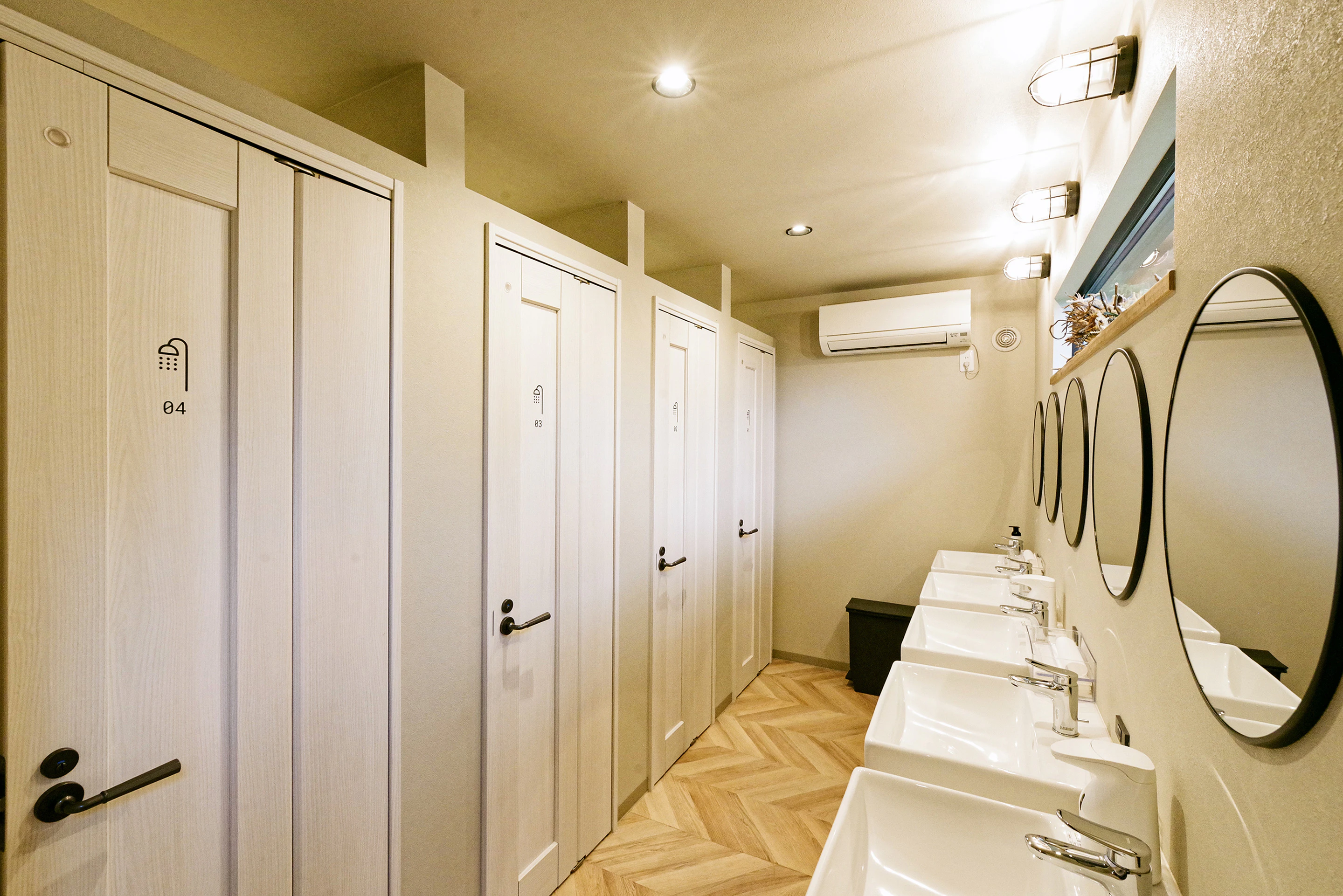 バスタオルやハンドタオルも準備されているため、テントから持参する必要はありません。シャワールームの前には、明るい洗面台もあり、ドライヤーの利用が可能です。