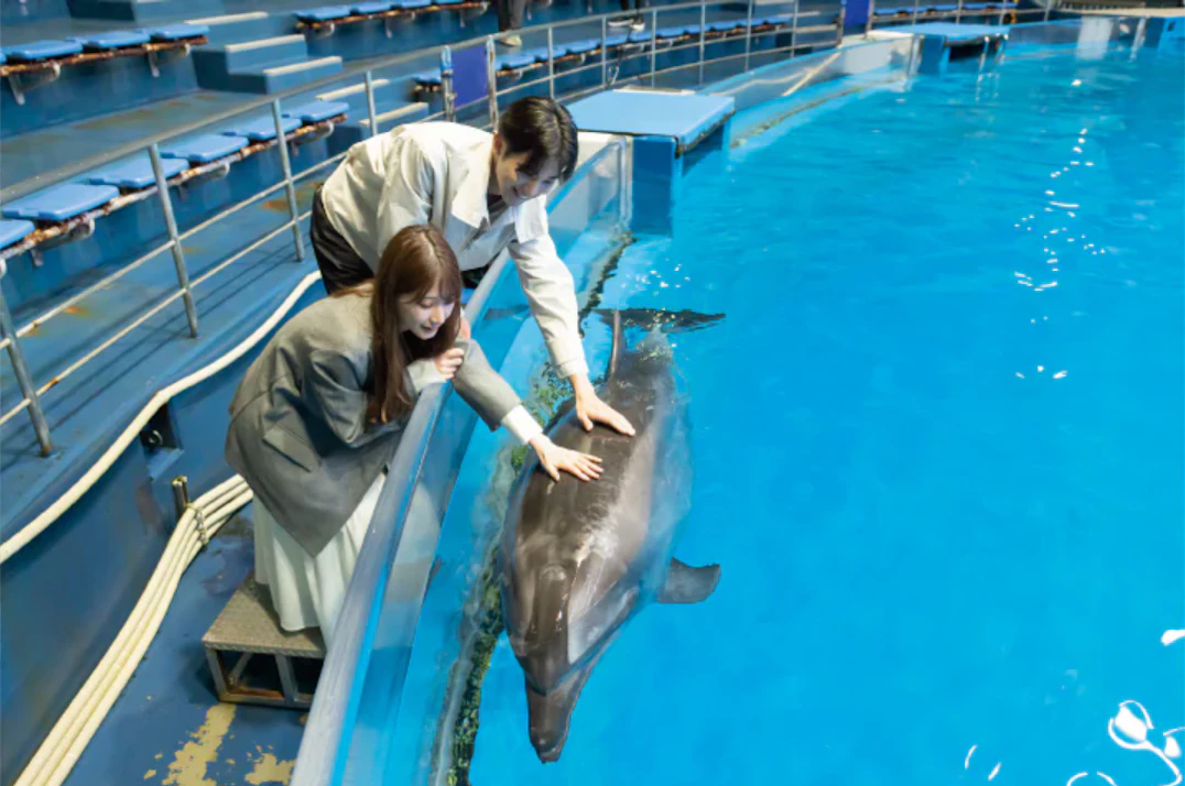 この体験も事前予約が必須で、10歳以上かつ25メートル以上泳げる方が対象。水着は基本的に持参となりますが、有料のレンタルも用意されています。水中でイルカと目線を合わせ、実際に触れて温もりを味わってみましょう。