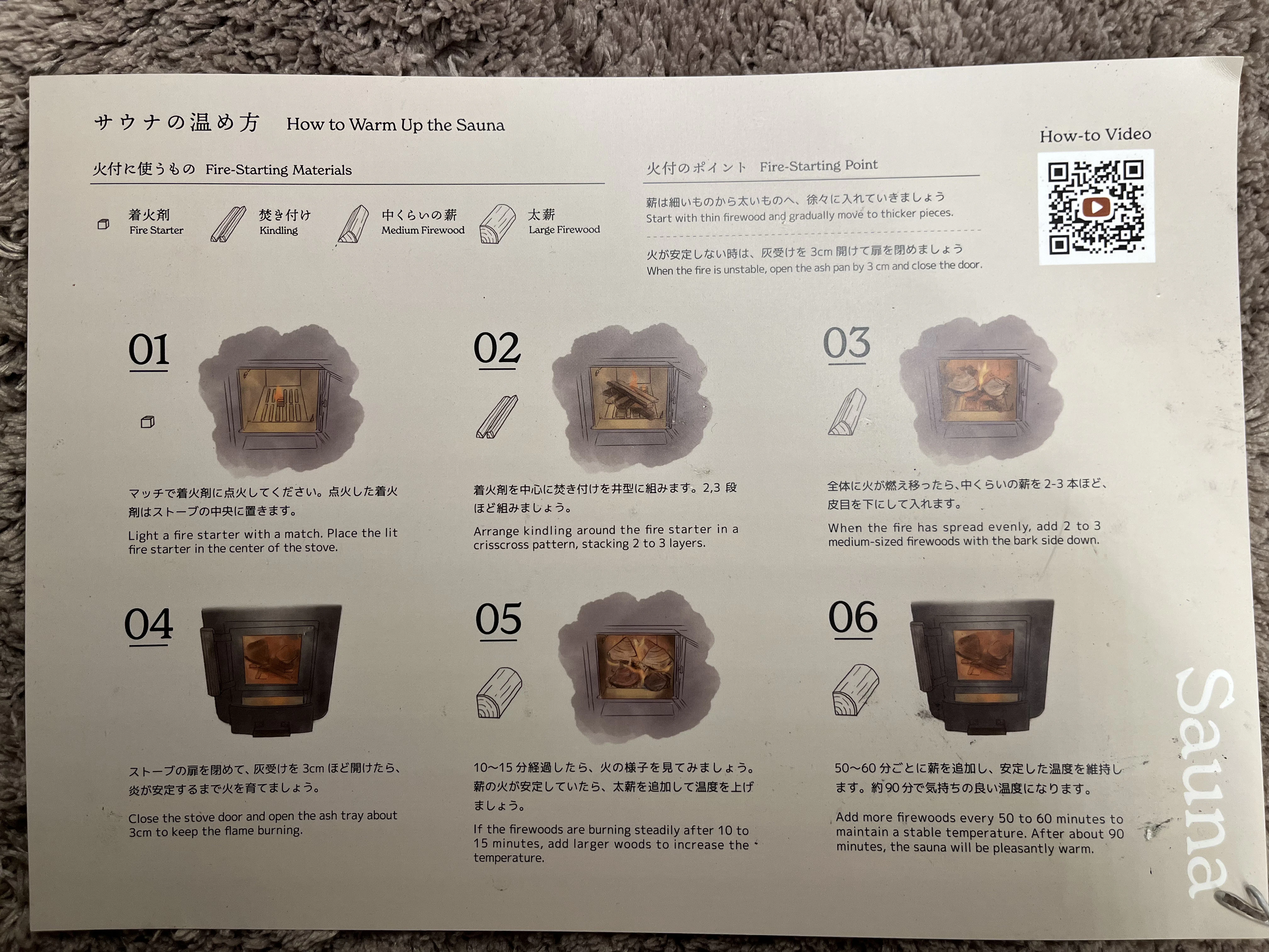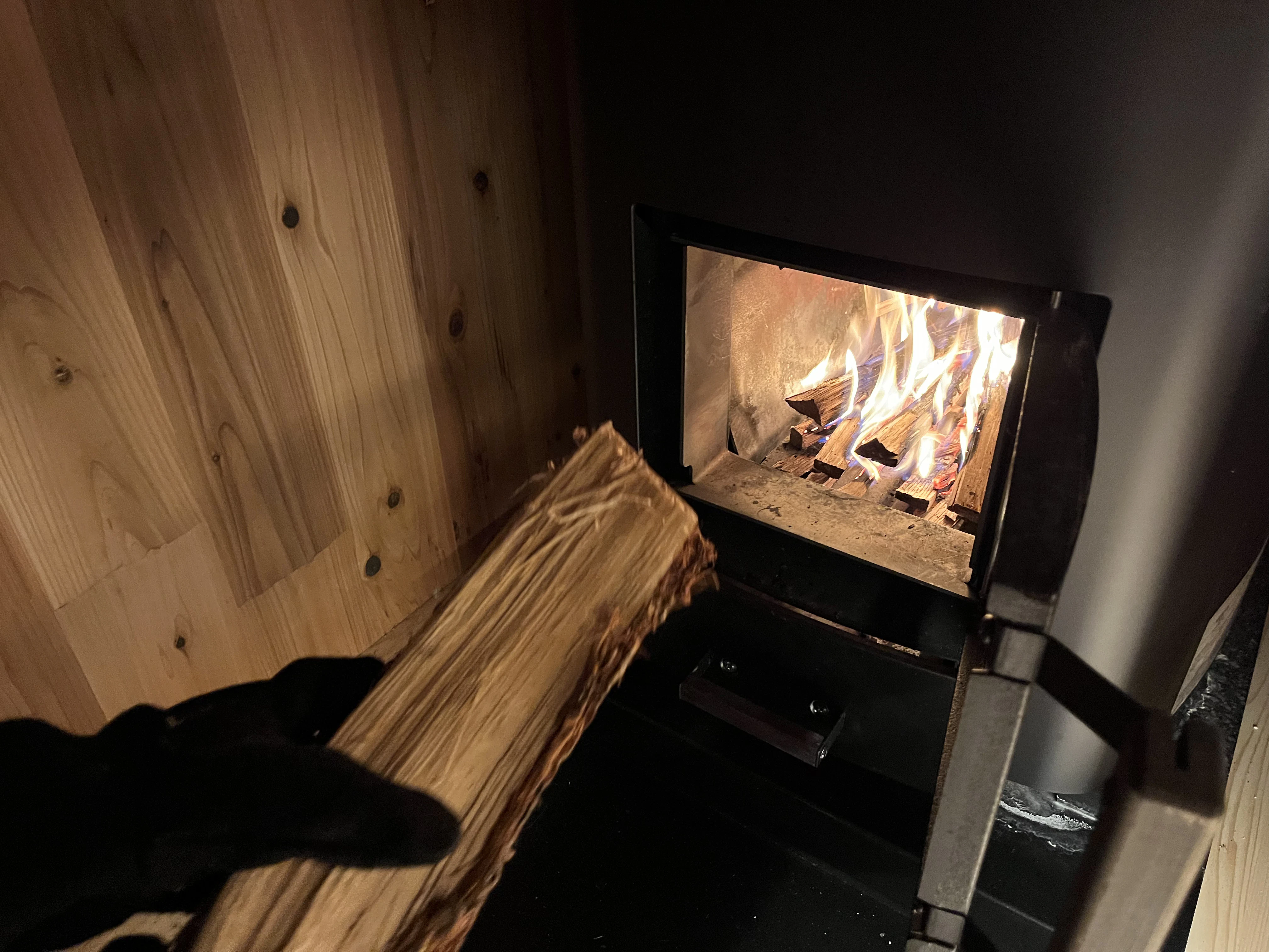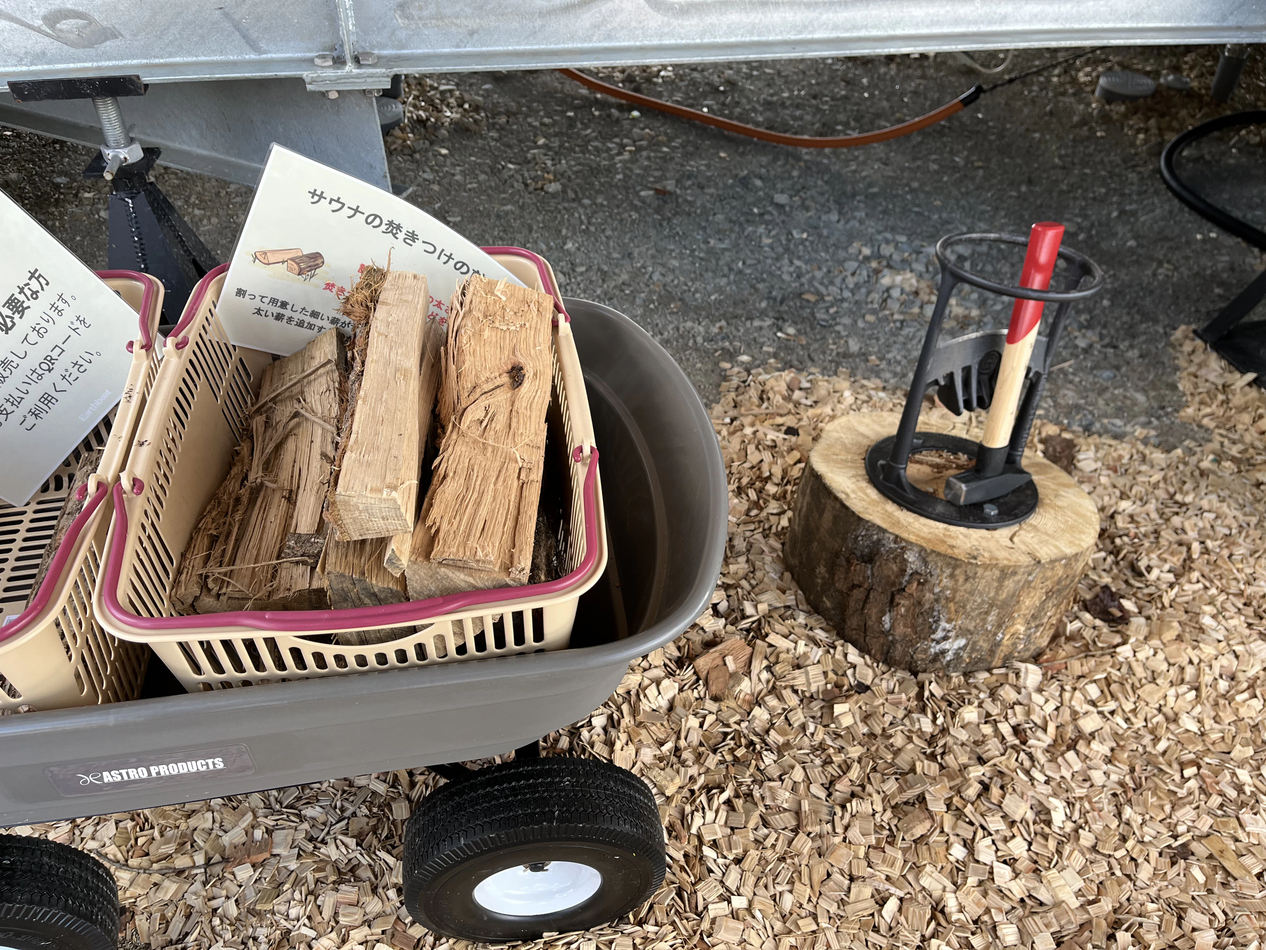 「さあ入ろう」と思ったのですが……ここは薪ストーブ方式。しかも、自分で薪を割り、くべて温めるスタイルなのです。サウナが良い温度になるまでには、約90分かかるとのこと。