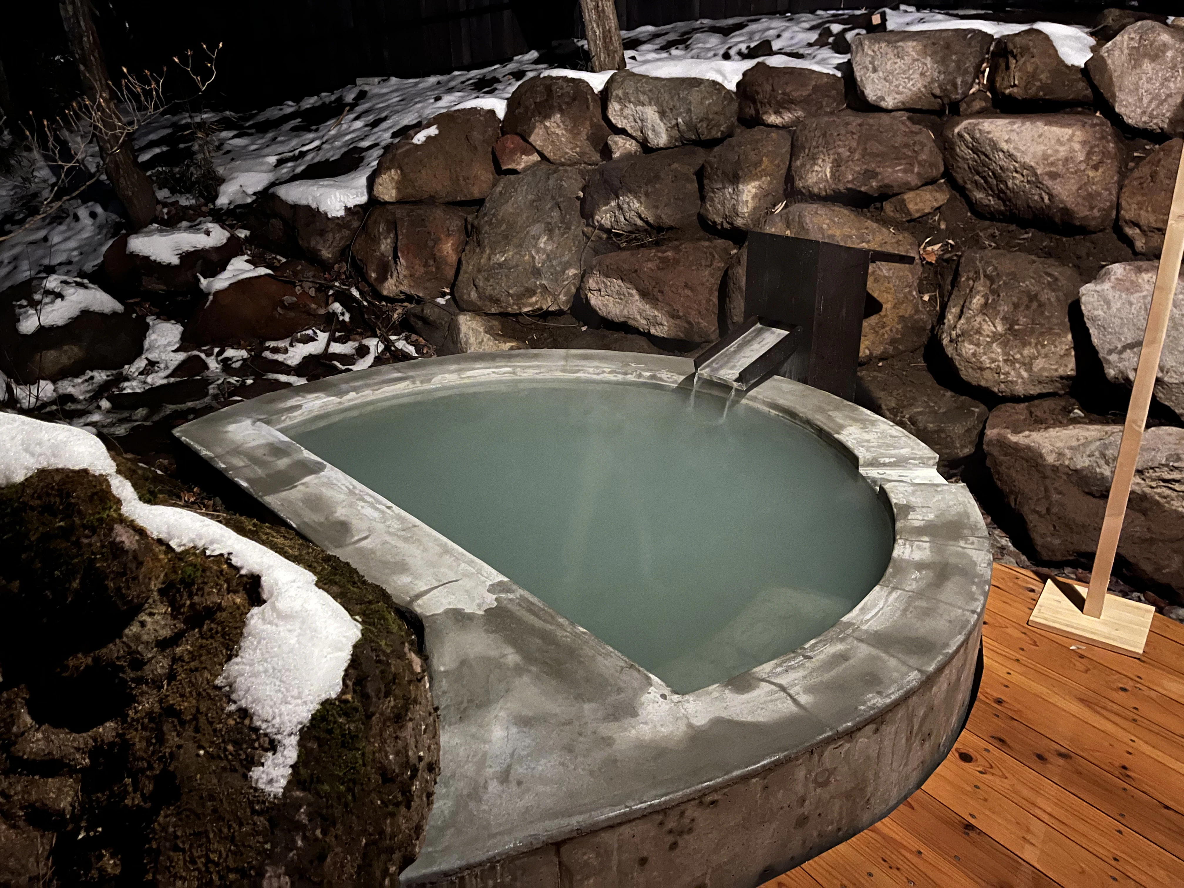 水とお湯の2つの蛇口があるので、温かい露天風呂として楽しむことも可能。