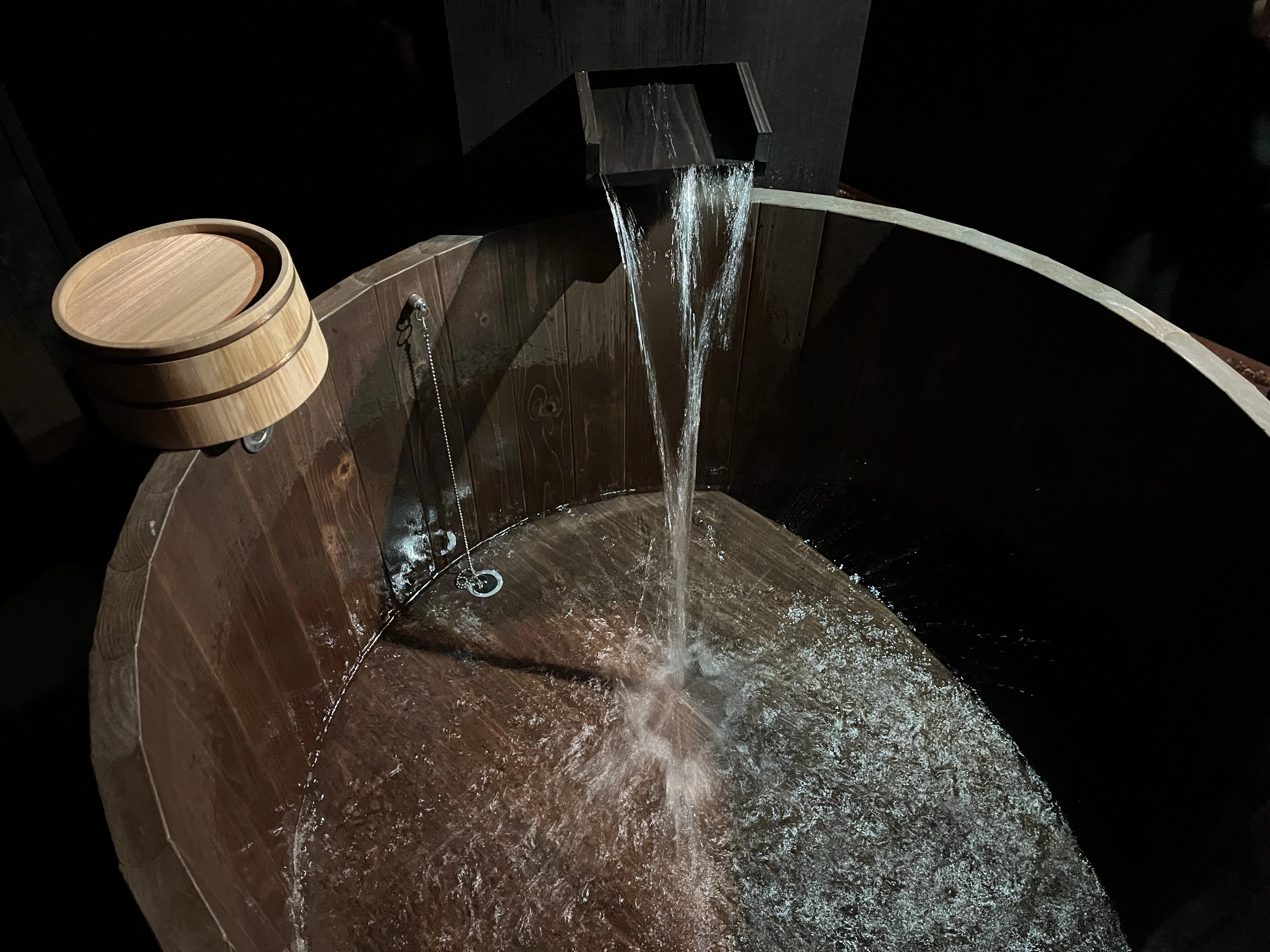 この水風呂は私たちだけのもの!頭までザブンともぐる背徳感もたまりません。1人なら手足を大の字に伸ばせるサイズ感も最高です。