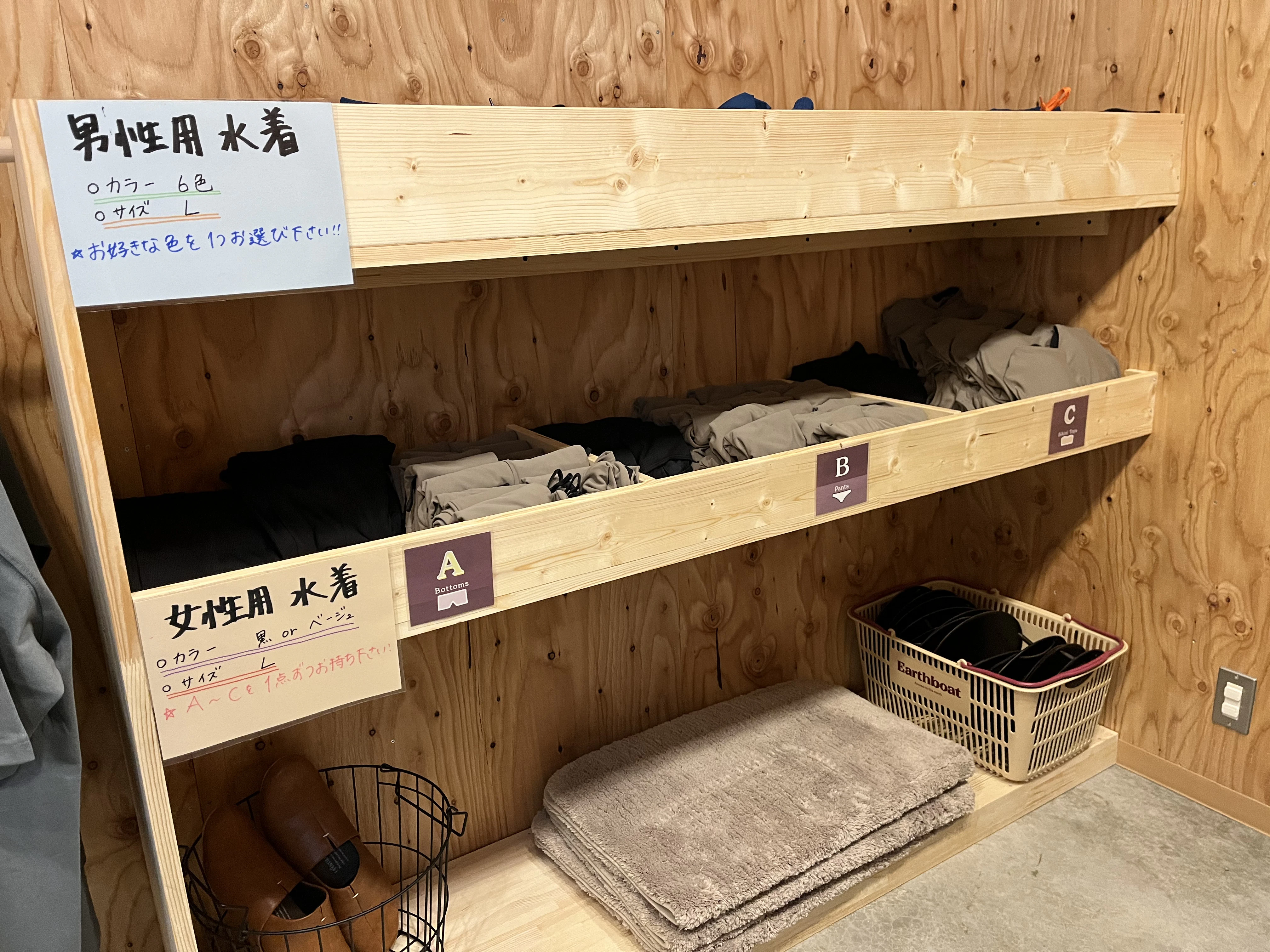 入口付近にある管理棟では、水着やスリッパなどをレンタルできます。