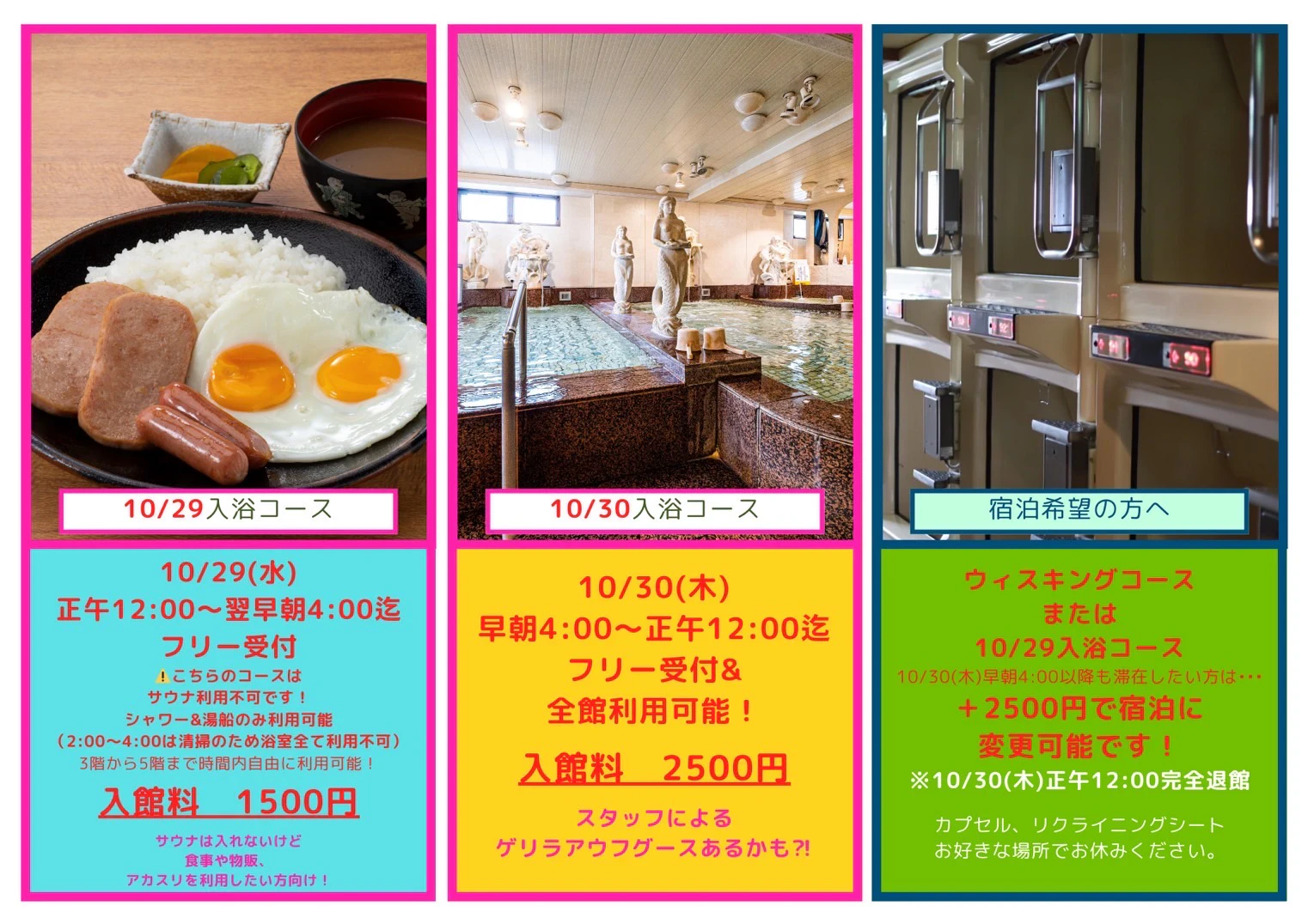 ウィスキングに予約した方は30日早朝4時まで滞在できるのですが、それ以降も滞在を希望される方は+2,500円で宿泊も可能。