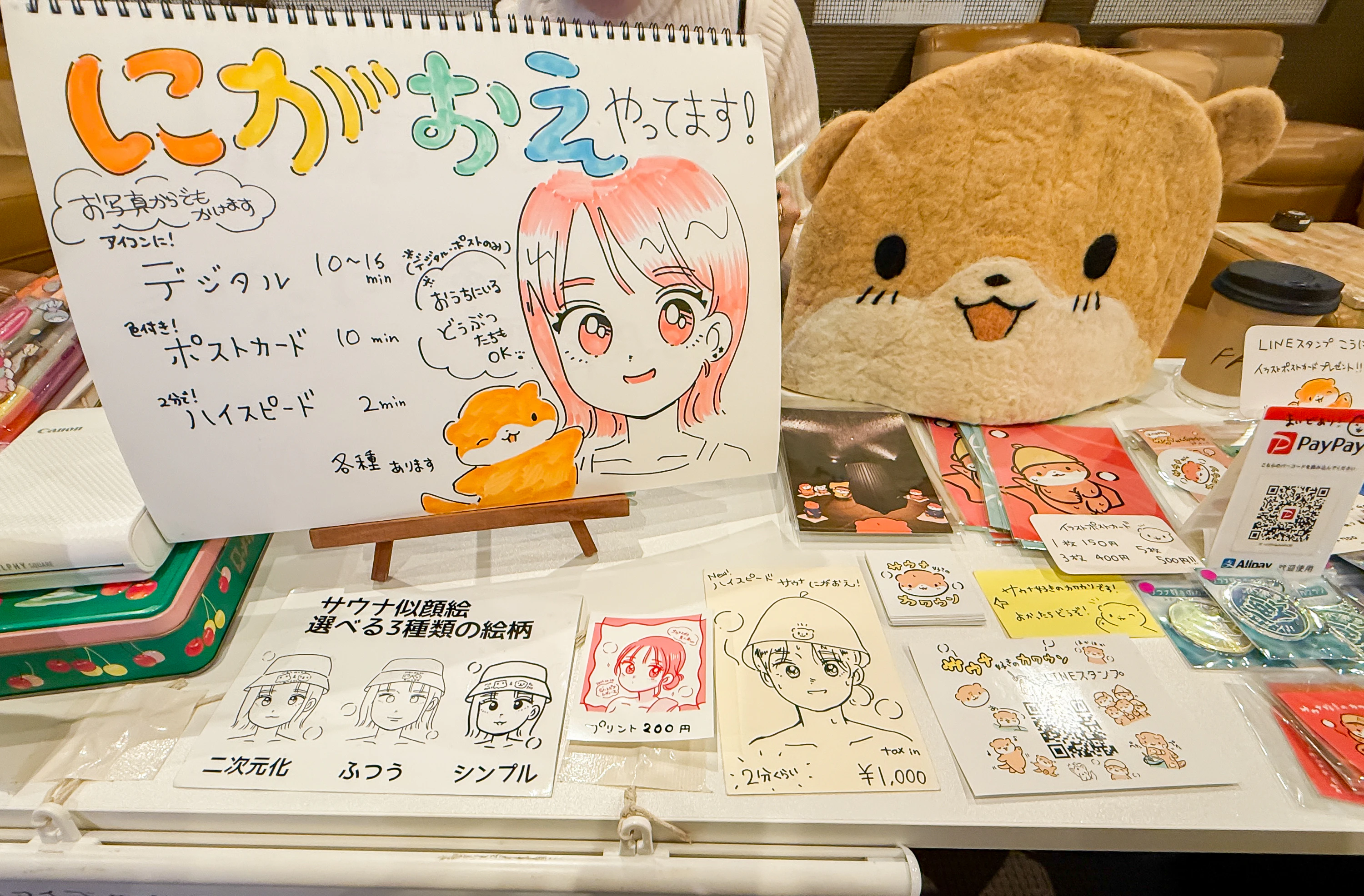 「サウナにがおえやさん」の安住さんに、ジョートピア仕様の似顔絵を描いていただいたり!