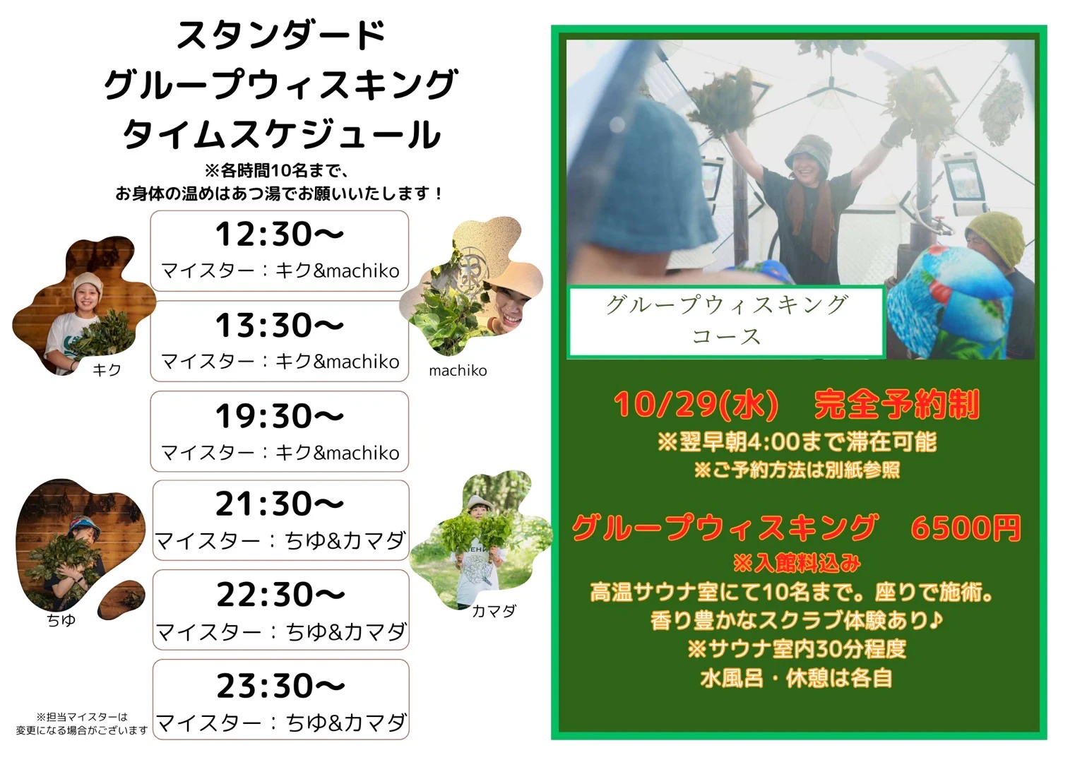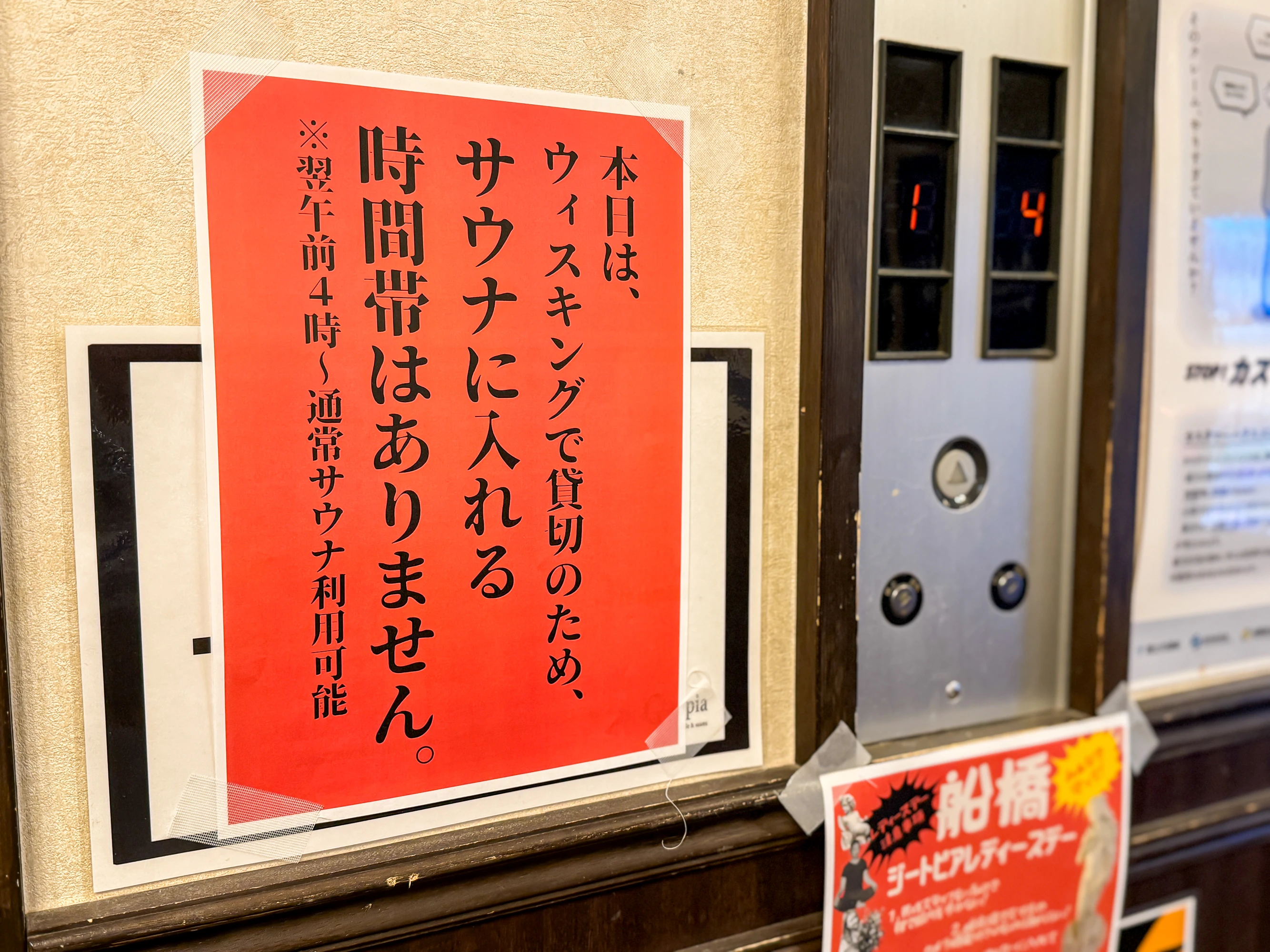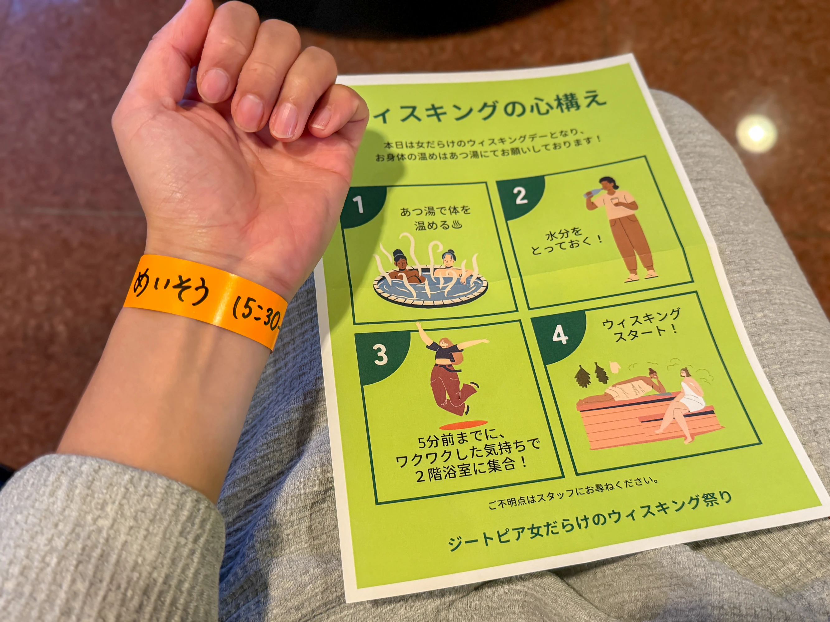 この日は、終日サウナ室でウィスキングが行われているため、サウナ室に入れるのはウィスキングの予約時間のみ。
