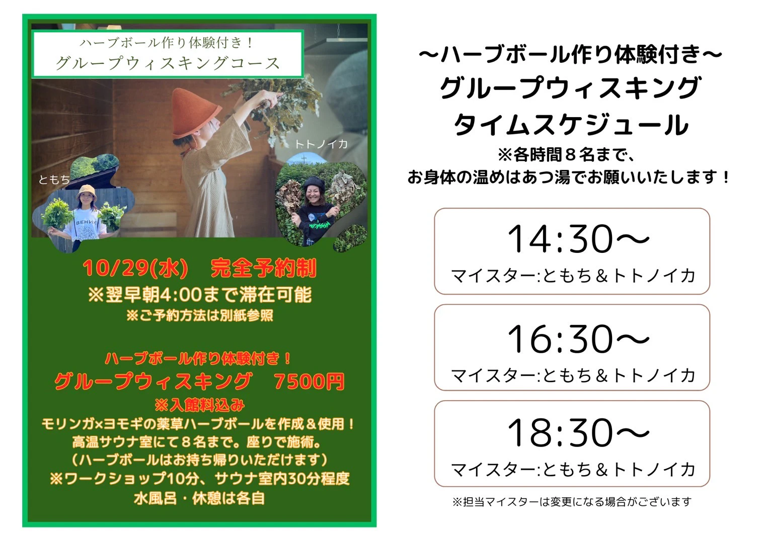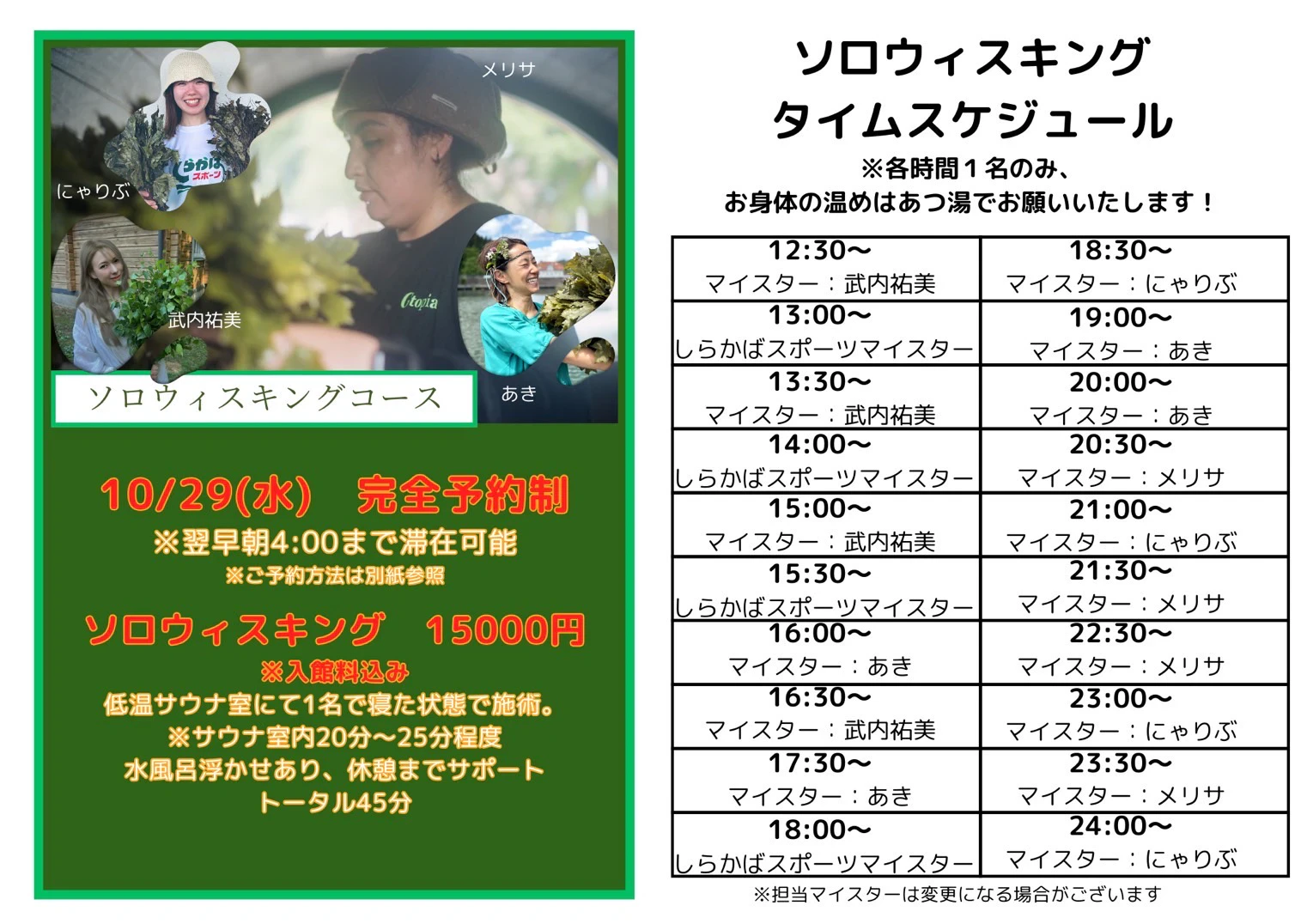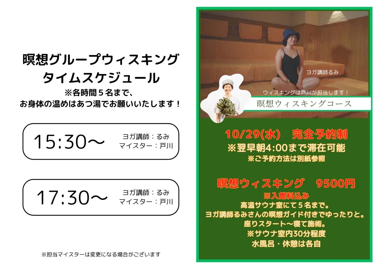 この日は、終日サウナ室でウィスキングが行われているため、サウナ室に入れるのはウィスキングの予約時間のみ。