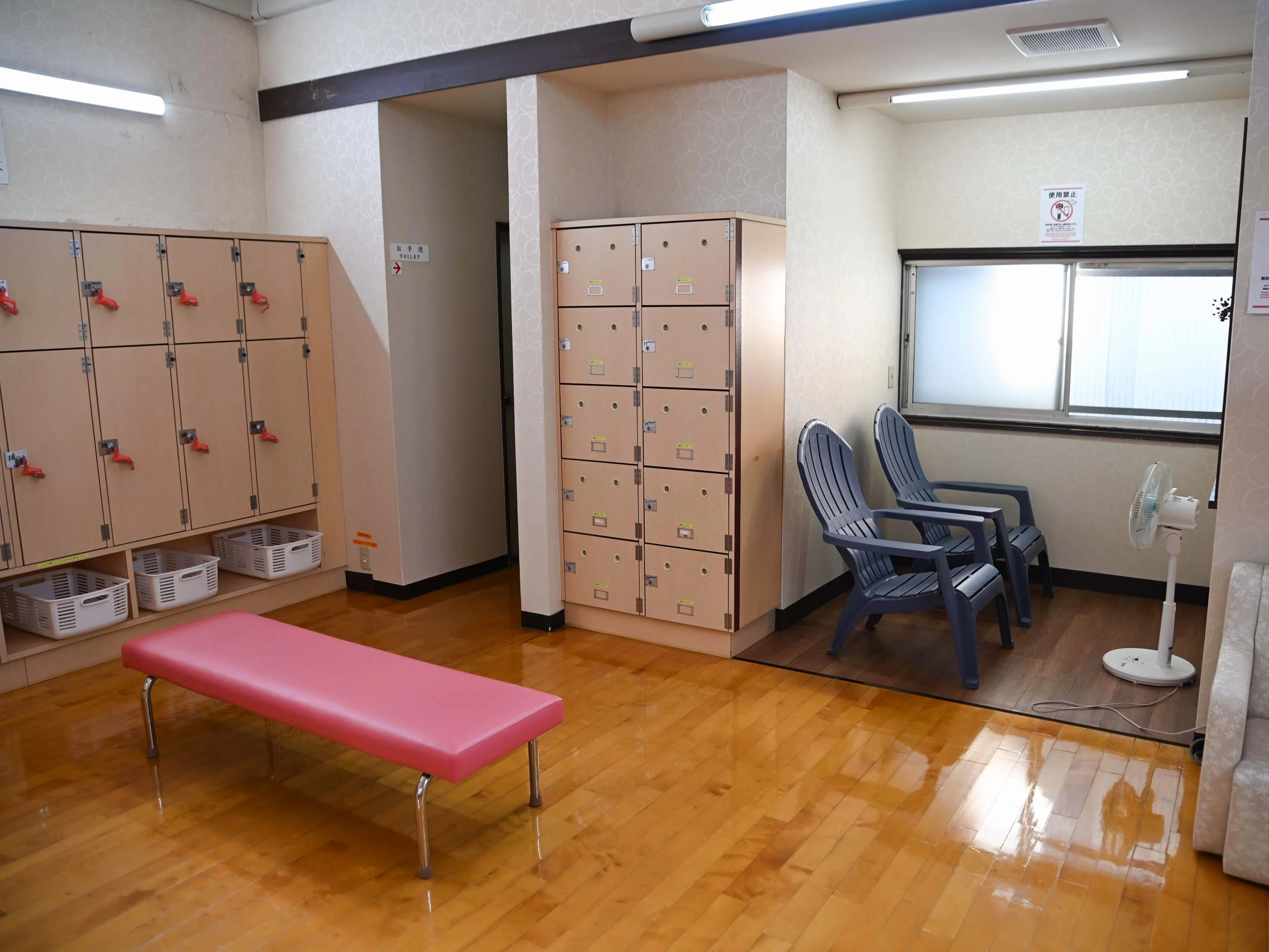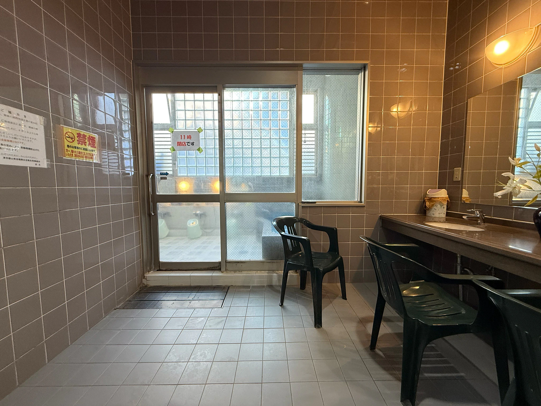 男湯には、休憩用のイスが設けられていますが、女湯の設置はとくにありませんでした…。(脱衣所にはあります!)