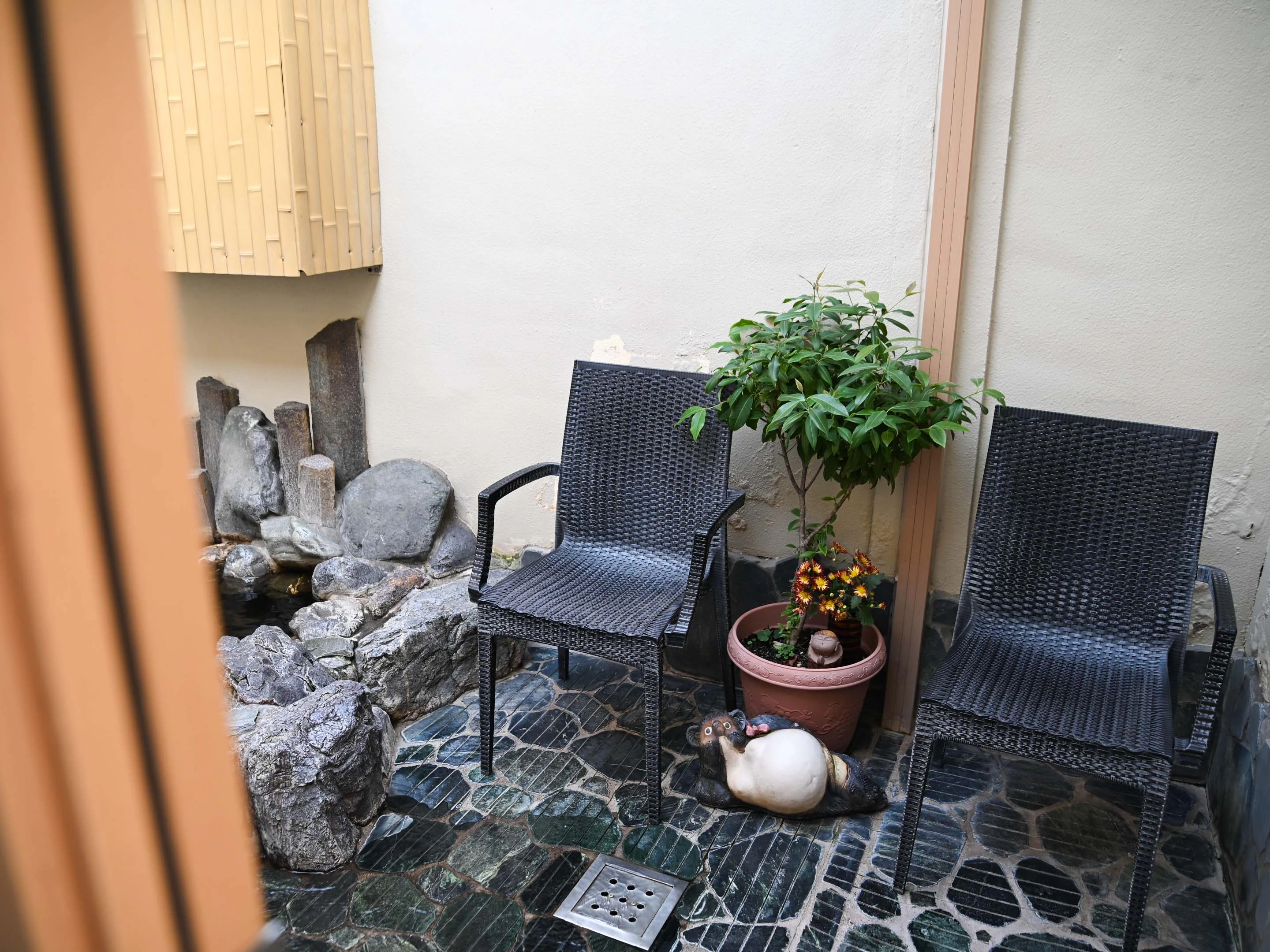 サウナ室の目の前に水風呂が用意されているので、動線もスムーズ!休憩イスやベンチで誰にも邪魔されない至福の時間が過ごせます。