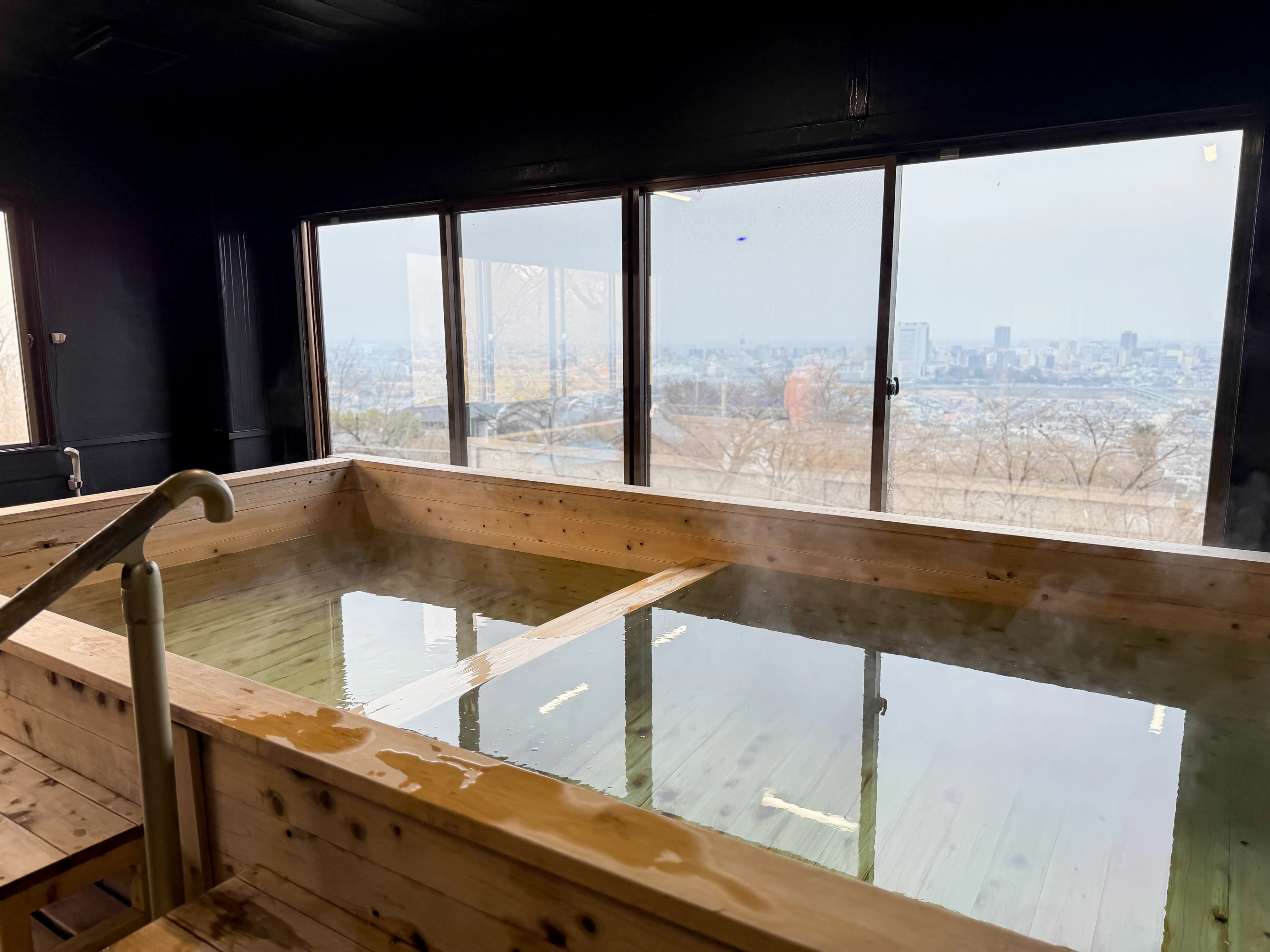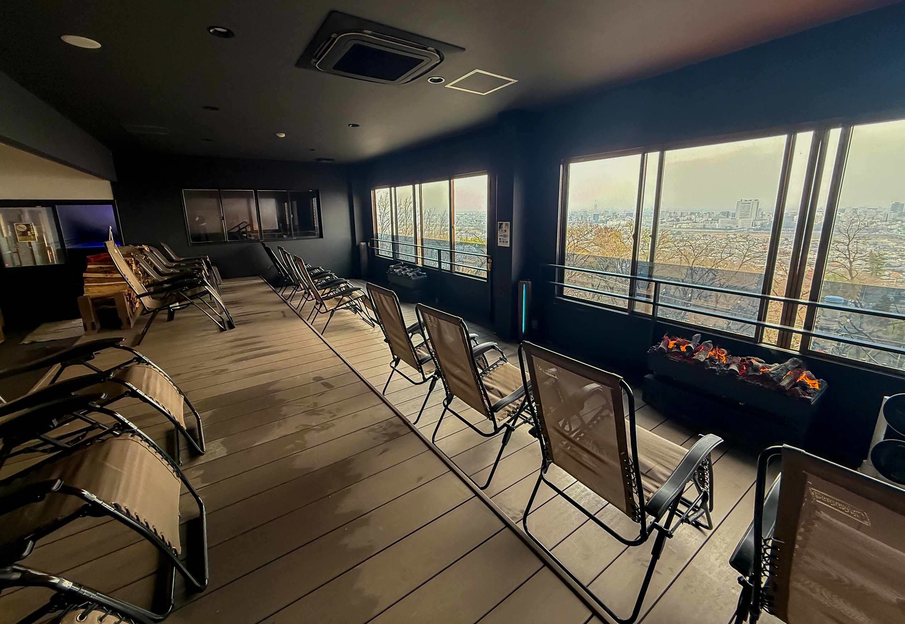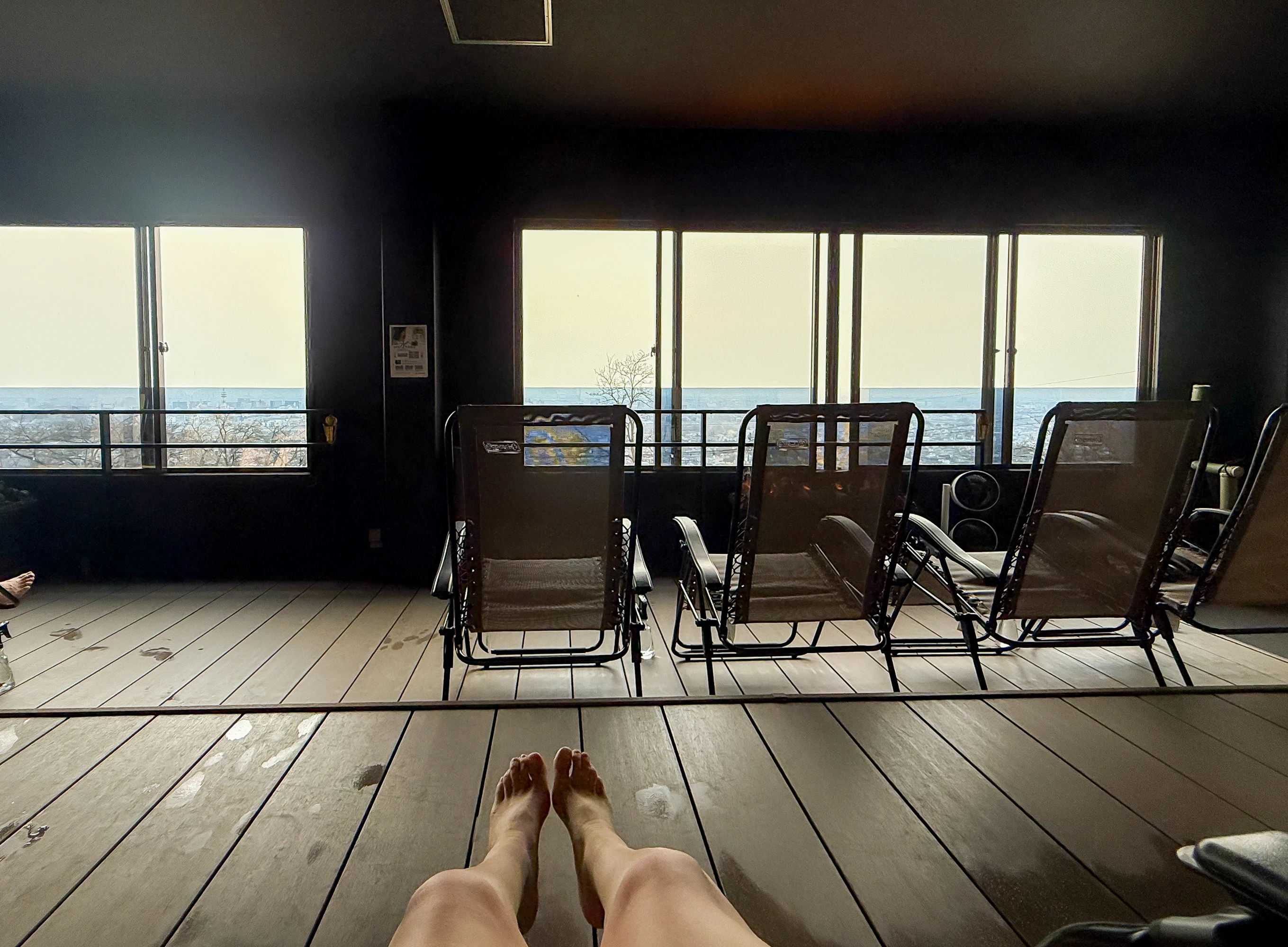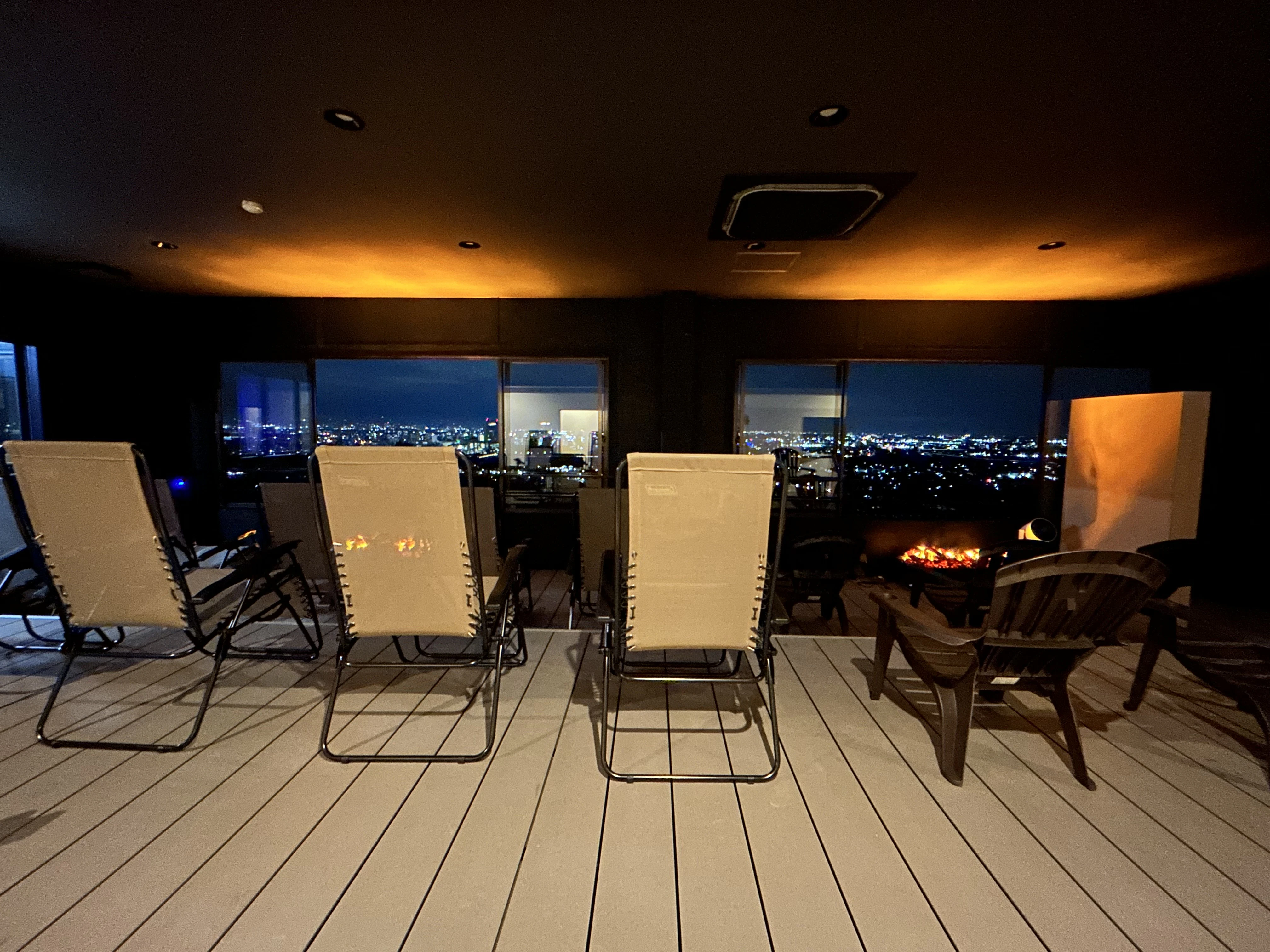 夜は窓の外に夜景が広がり、キラキラッと輝く幻想的な視界へ。こんないいスポットでととのえるなんて、地元の方が本当にうらやましい。