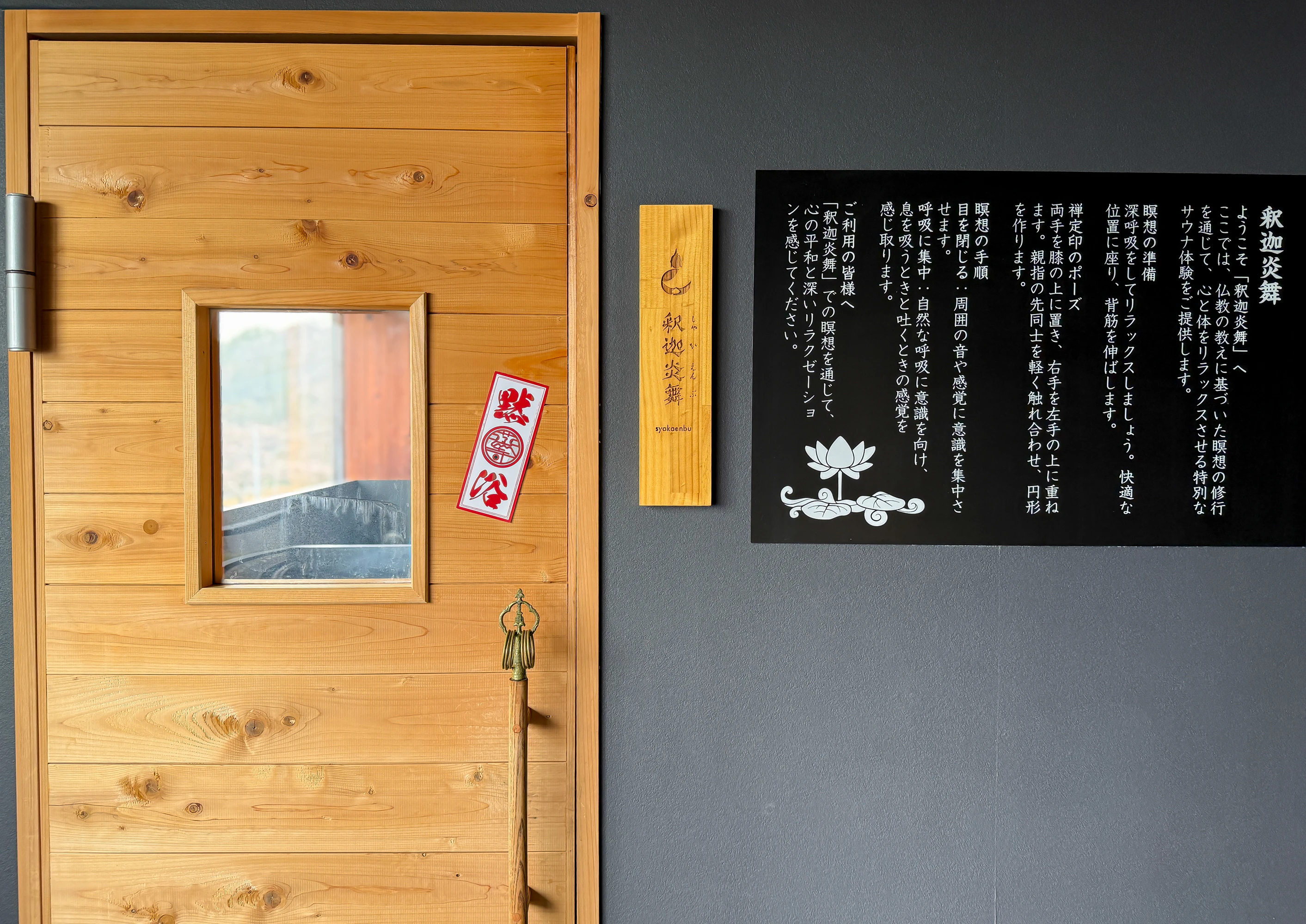 室内には、仏教の教えをサウナにかけて説いたオリジナルの「説法(せっぽう)」が流れており、音声に従って心を沈め、己と向き合うことができます。