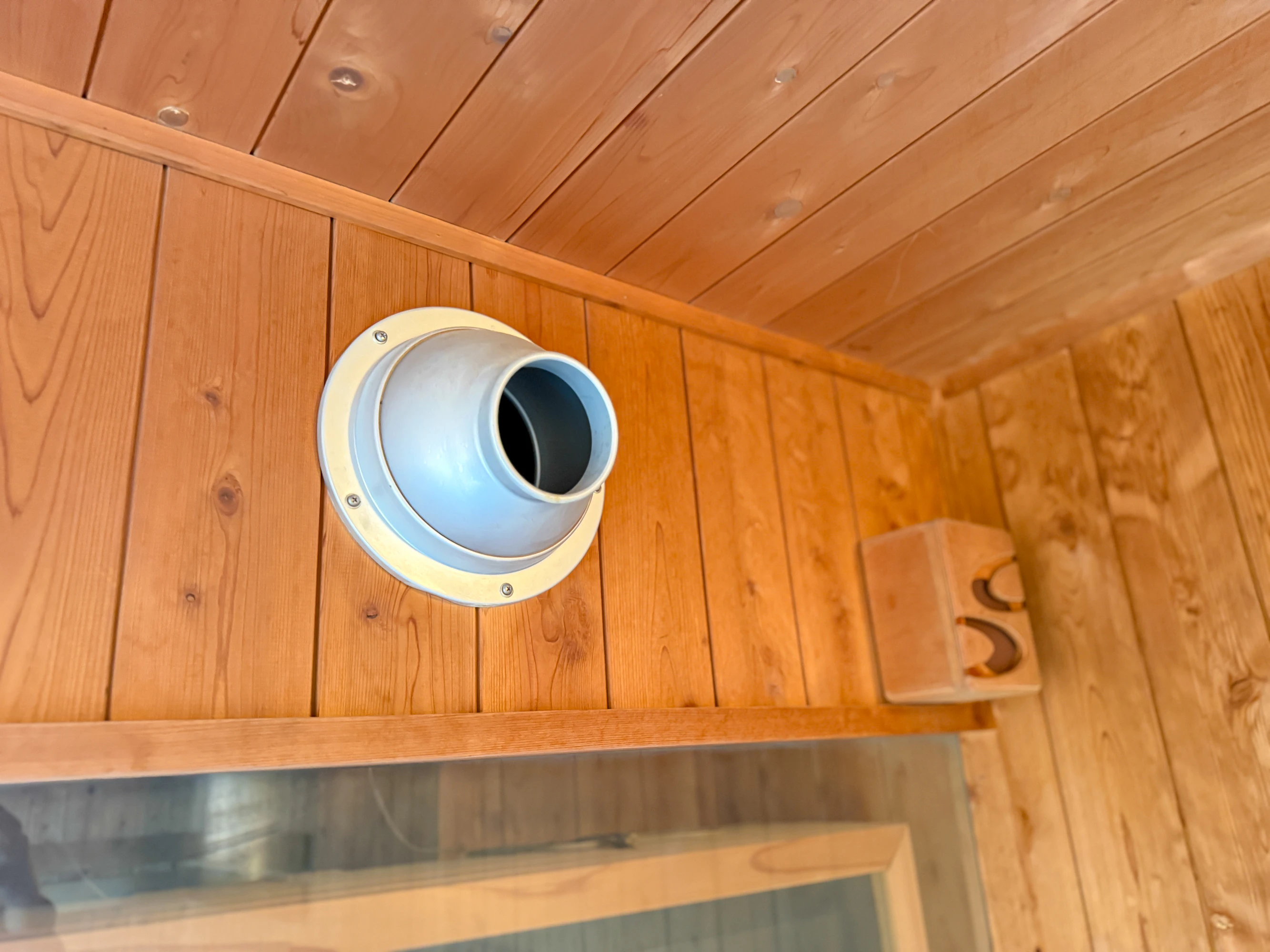 室温は90〜95度と、比較的高めの温度設定ですが、入った瞬間から熱くて痛い!というわけではなさそうな…?そうこうしているうちに、オートロウリュが作動。