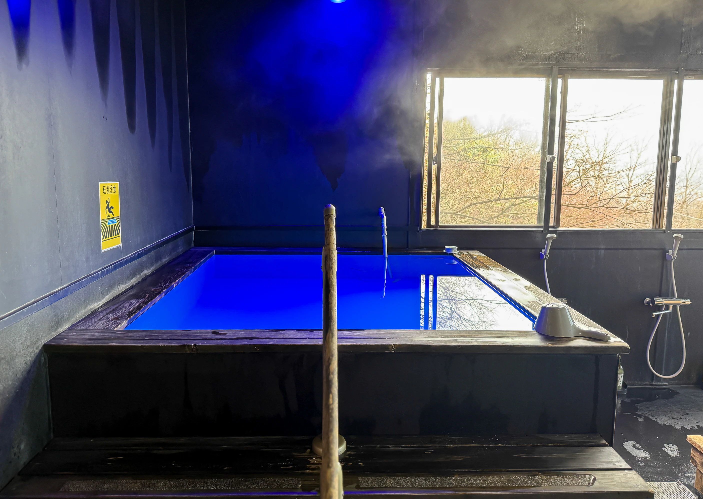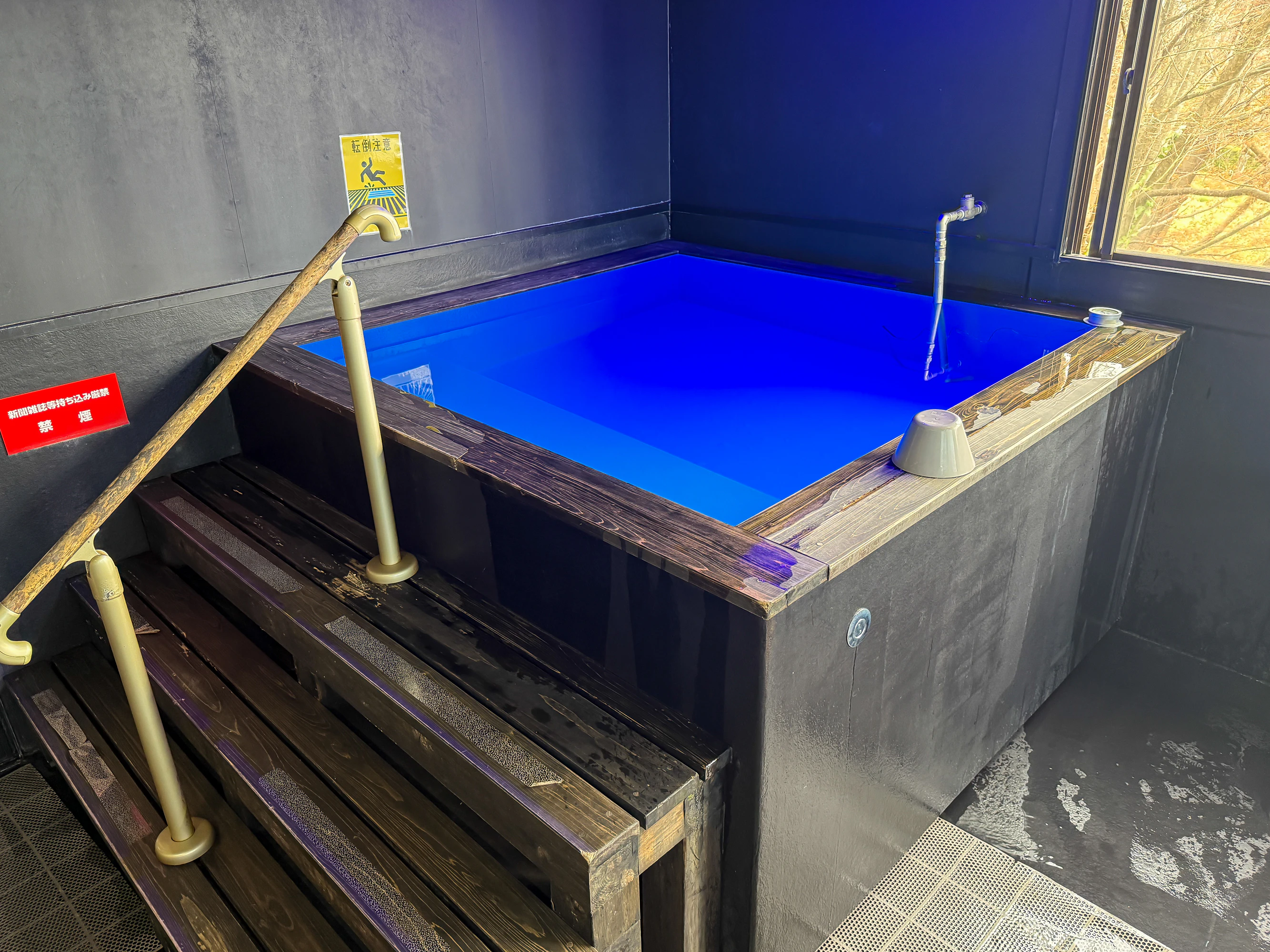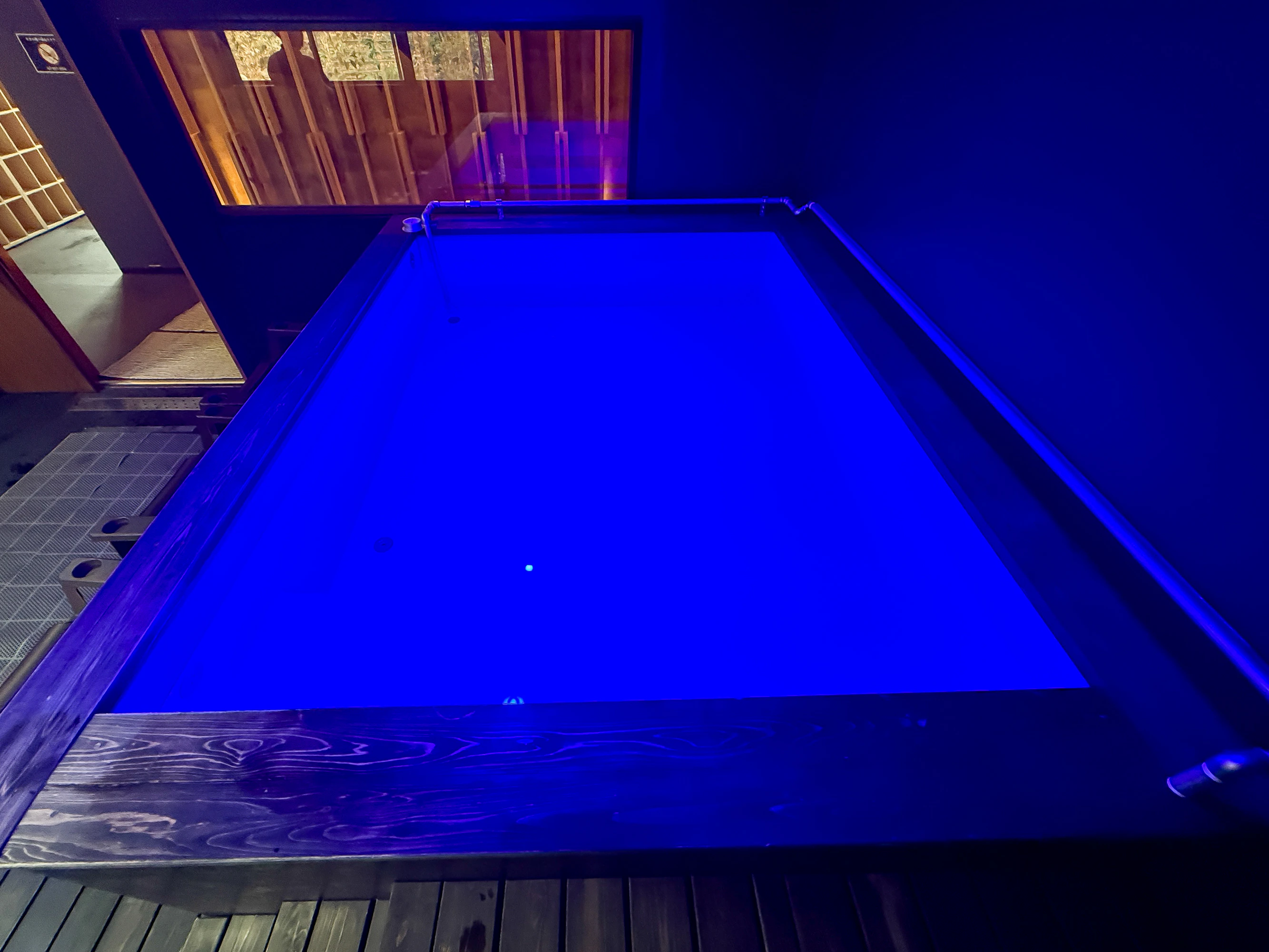 「空の間」「蒸観音」2つのサウナ室の目の前には、14〜15度としっかり冷えた水風呂の用意も!水深は90センチほどで、深さたっぷり。