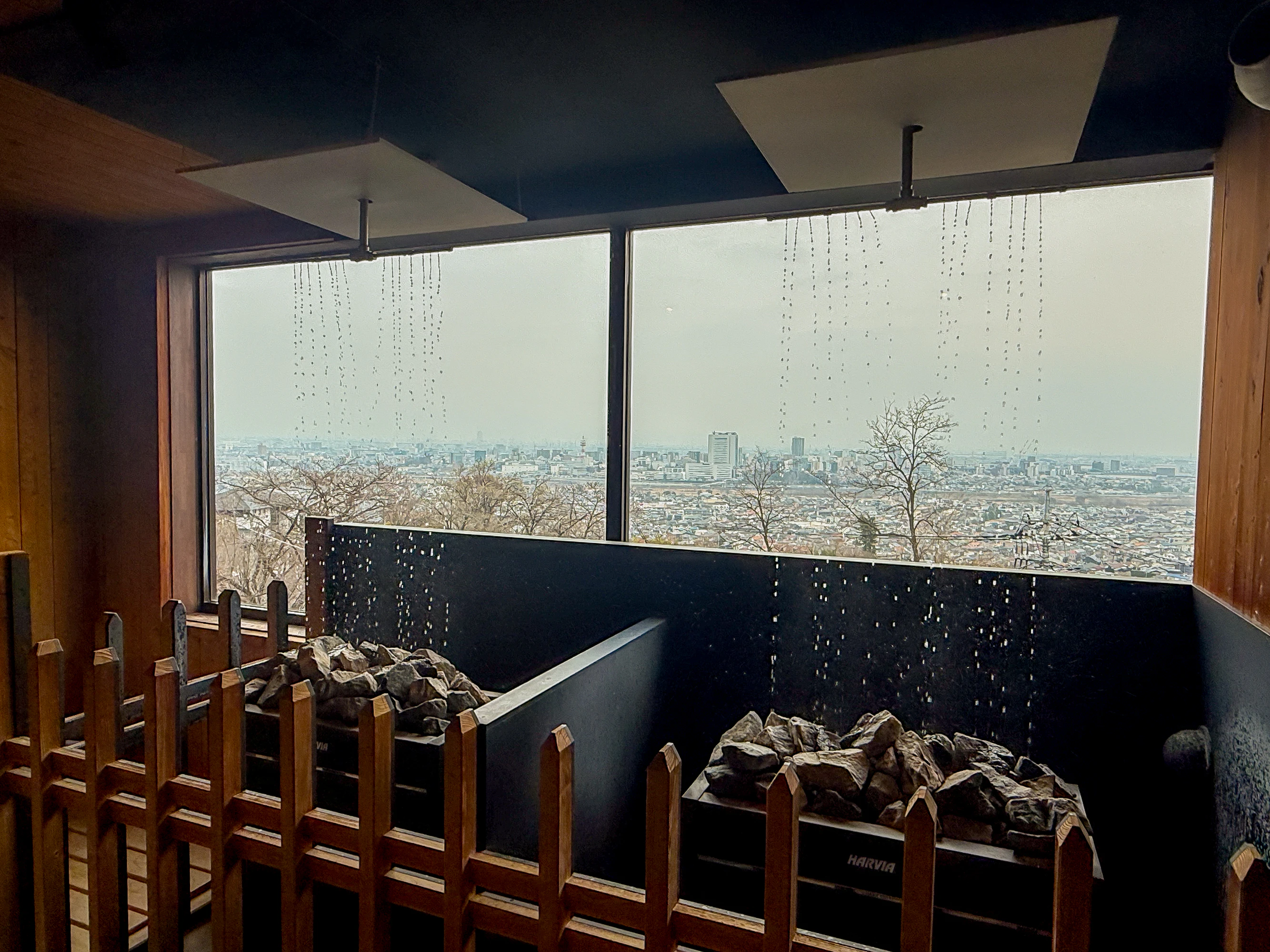 HARVIAのサウナストーブ2台に一気に降り注ぐオートロウリュ、見た目が美しいのはもちろんですが、「ま、まだ?まだ続いちゃうの?」と思ってしまう時間の長さも特徴です。