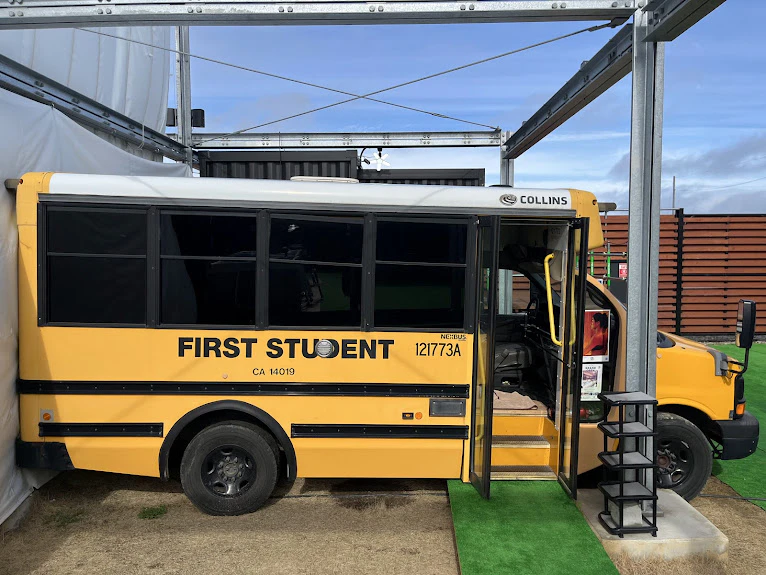 3つ目は「アメリカンスクールバス ”動”」。なんと移動型のサウナバスです!