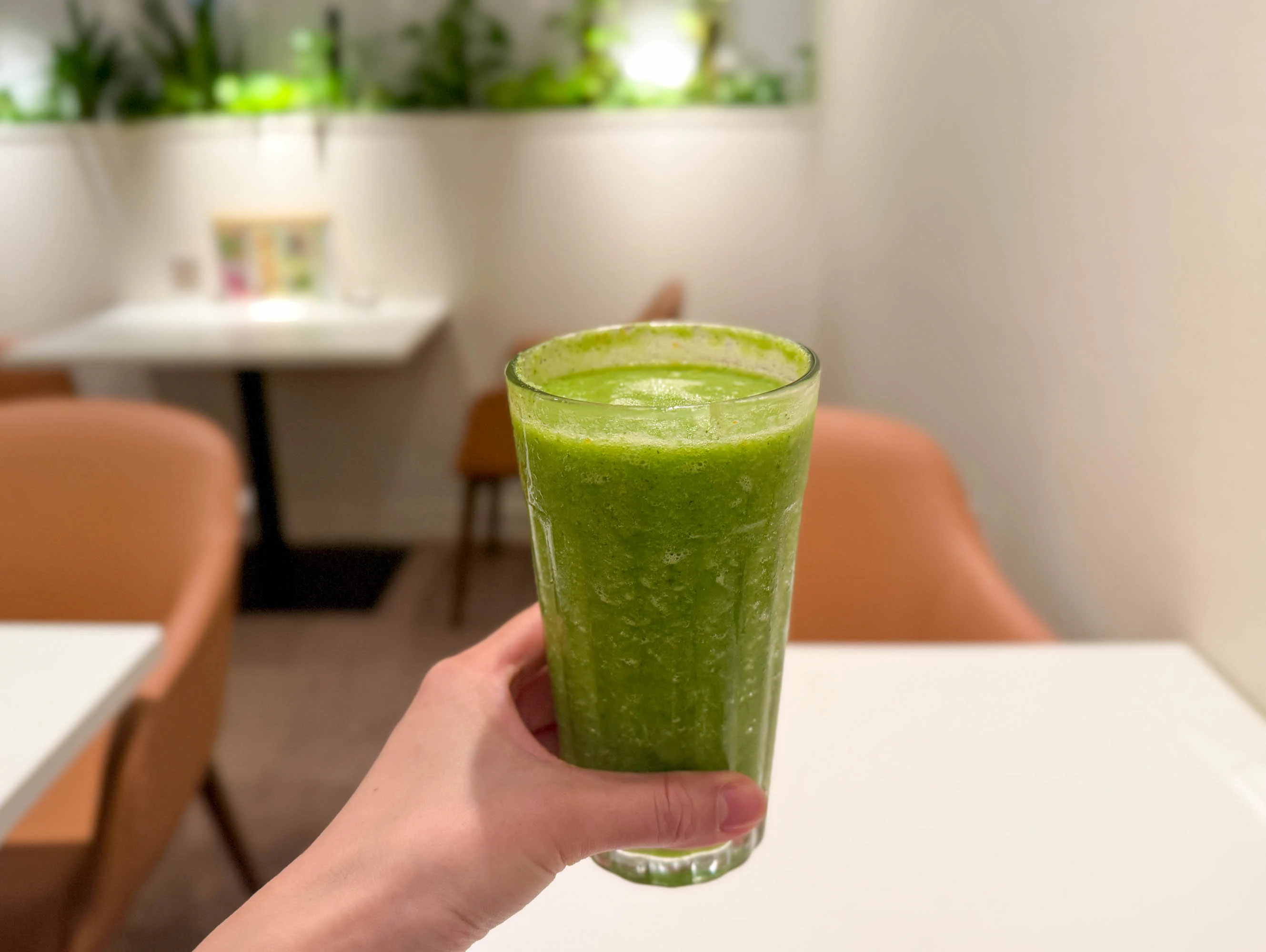 デザート代わりには、ビタミン補給のために人気のスムージーを注文。身体の内側のクレンジングも進みそう!