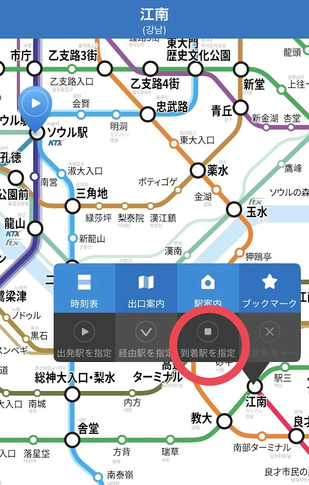 電車移動におすすめなのは「Subway Korea」というアプリ。ソウル市内の路線図を網羅していて、日本語にも対応しています。