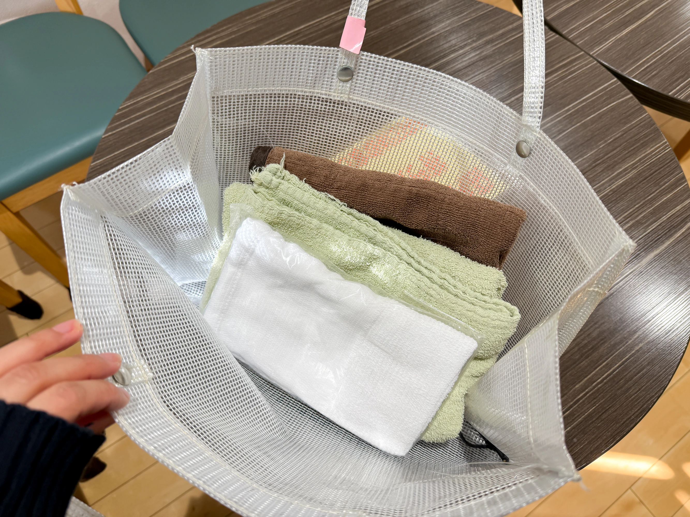 受付で受け取ったカバンのなかには、タオルのほかに、サウナマットも入っていました!浴室には、シャンプー類もそろっているとのことで、手ぶらで問題なく過ごせそうです。
